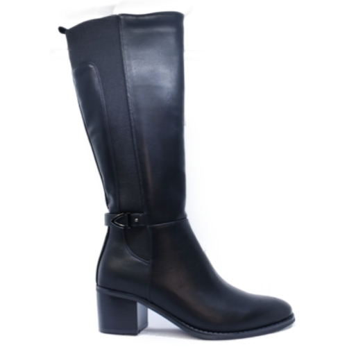 Bota de tacón ancho y medio de 4,5 cms. Realizadas en suave material sintético. Se adapta a cualquier pierna, gracias a su elástico posterior y cierre de cremallera. Altura de caña: 29cm alto desde tobillo.