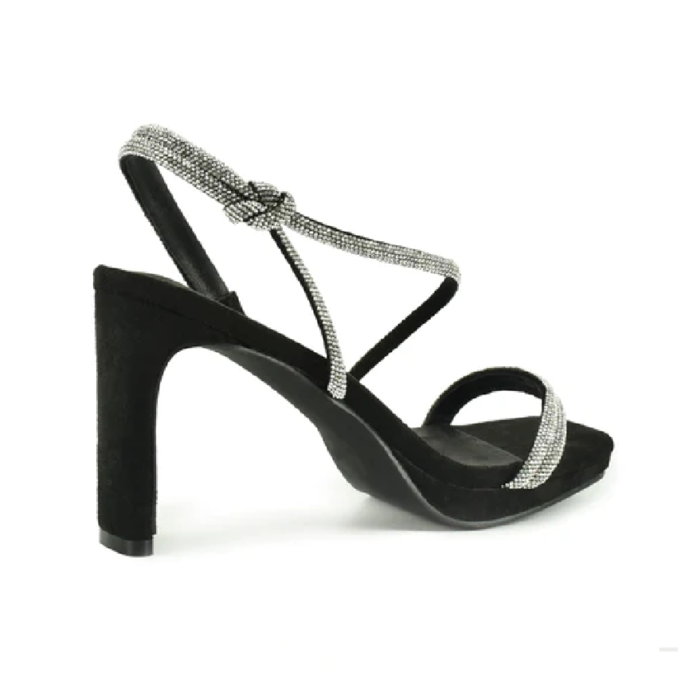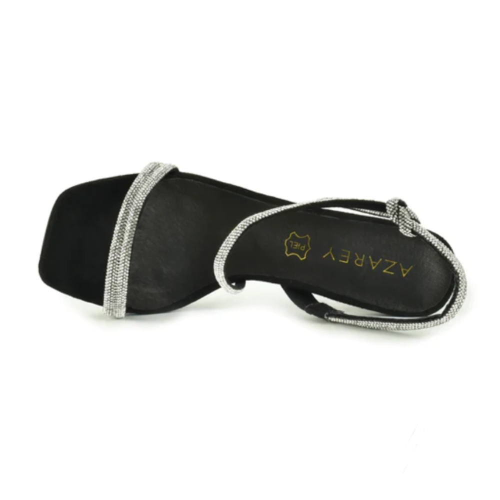 Sandalia joya de la marca Azarey que te va a ayudar a crear un look expectacular.  Realizada en tiras de pedrería con un nudo en el lateral para ajustar talonera y pulsera. Lleva una pequeña tira elástica en el lateral para conseguir una adaptación total a tu pie. LLeva una pequeña plataforma de 1 cm en su parte delantera y un tacón de 8 cms.