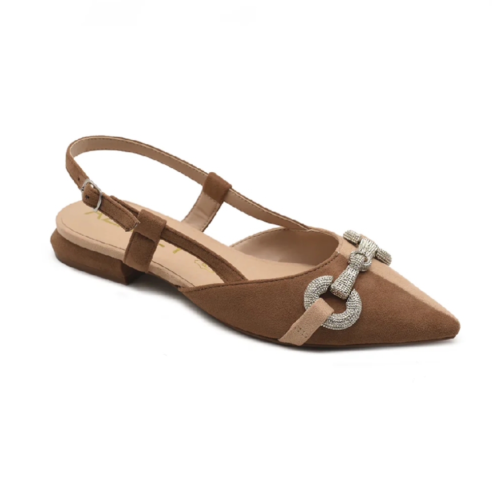 ¡Bailarina beige destalonada con adorno! El must-have para cualquier look de la temporada. Muy cómoda y versátil, bailarinas para mujer perfectas para conquistar todas las miradas! Tienen un tacón bajo que te darán la comodidad y estilo que necesitas este Verano 2024. Planta interior de Piel. Referencia: 574H509BEI