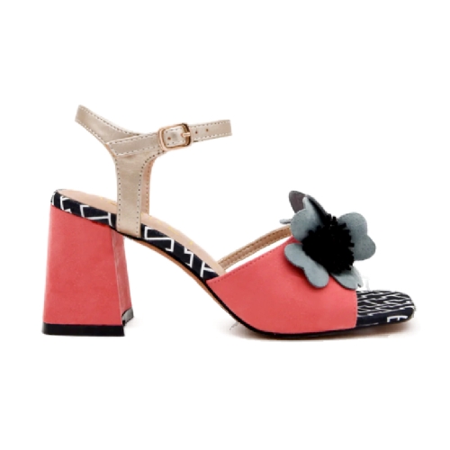 Estas sandalias de tacón ancho en coral son el equilibrio perfecto entre originalidad y confort. Su diseño incluye un adorno floral en relieve, que aporta un toque femenino y sofisticado. La correa ajustable en tono beige brinda una sujeción segura, mientras que el tacón ancho forrado en ante garantiza estabilidad y comodidad. Además, la suela con estampado geométrico añade un detalle moderno y elegante. Perfectas para eventos especiales o para darle un giro chic a cualquier look.