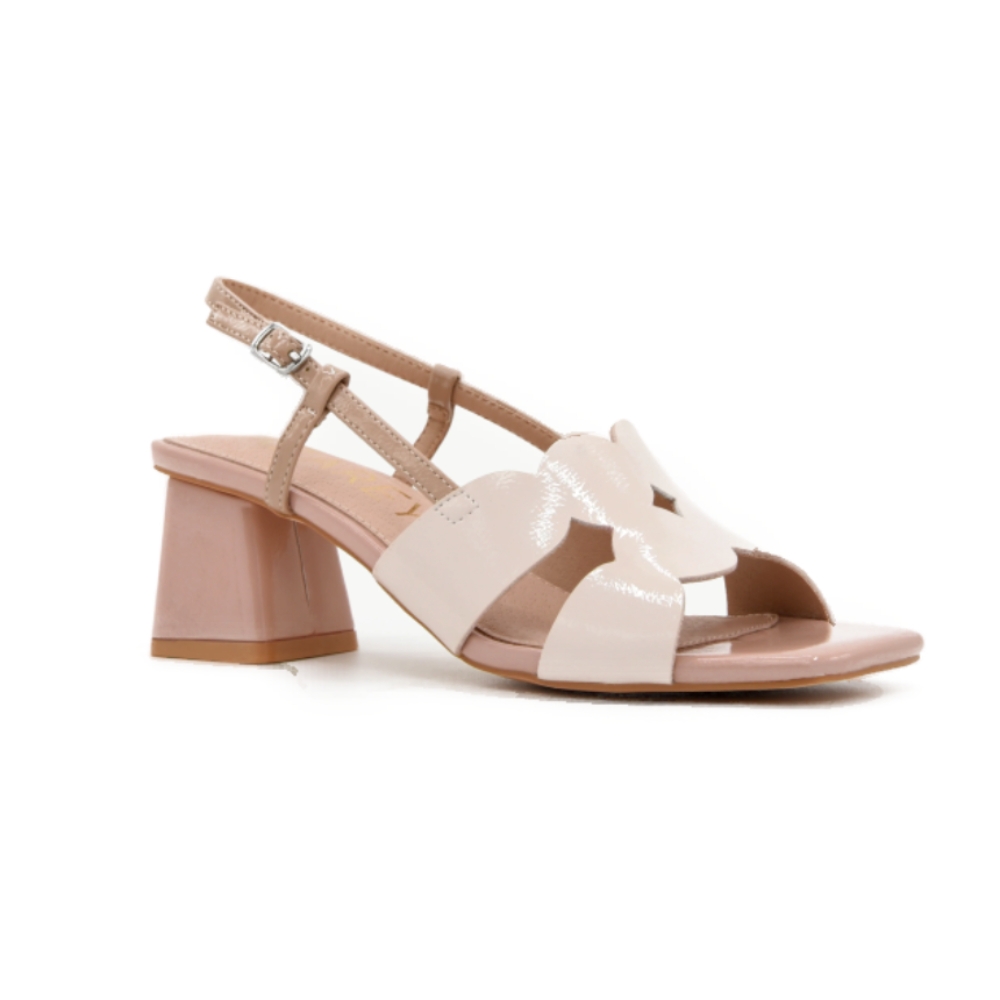 Las tiras finas en nude combinadas con el corte frontal ondulado aportan un aire delicado y ultra femenino, mientras que el tacón geométrico rosa añade un punto chic sin perder estabilidad. Su planta de piel te acompaña con comodidad durante todo el día, ya sea en una jornada de trabajo con estilo o en eventos especiales donde quieras apostar por un look sofisticado sin renunciar a la comodidad.
