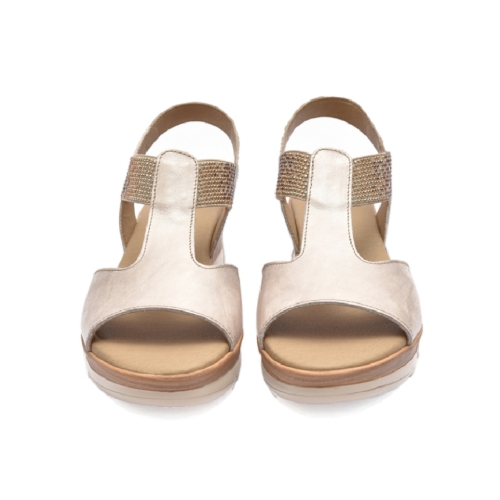 Sandalia Confort de piel interior forrado textil y plantilla acolchada muy confortable, 100% transpirable. Elásticos en ambos lados para un ajuste perfecto. Suela con cuña de 5cm en caucho.