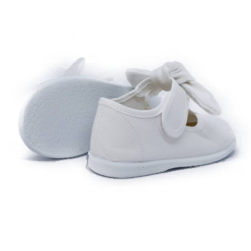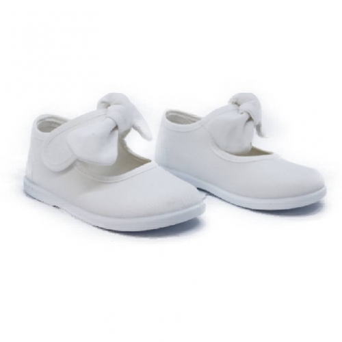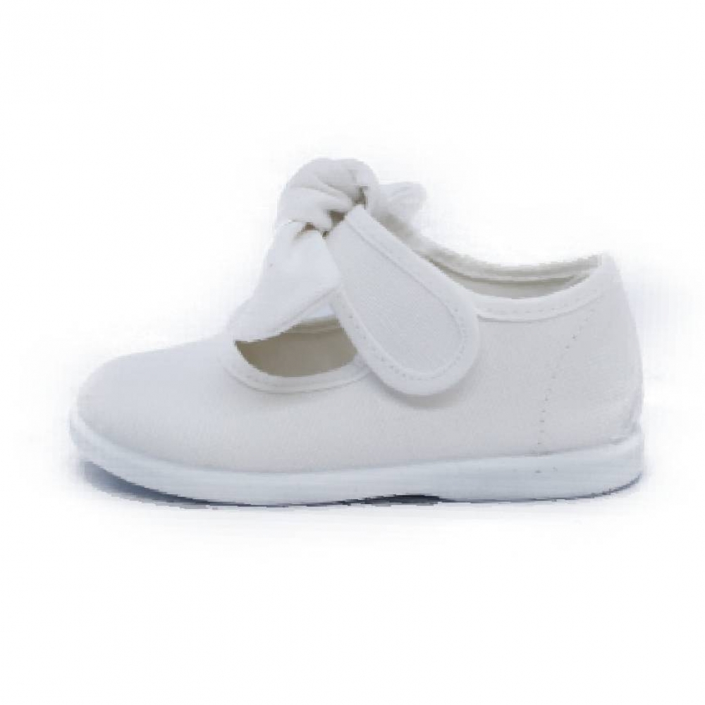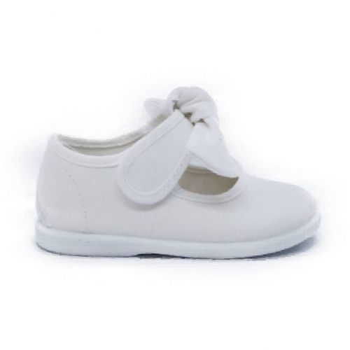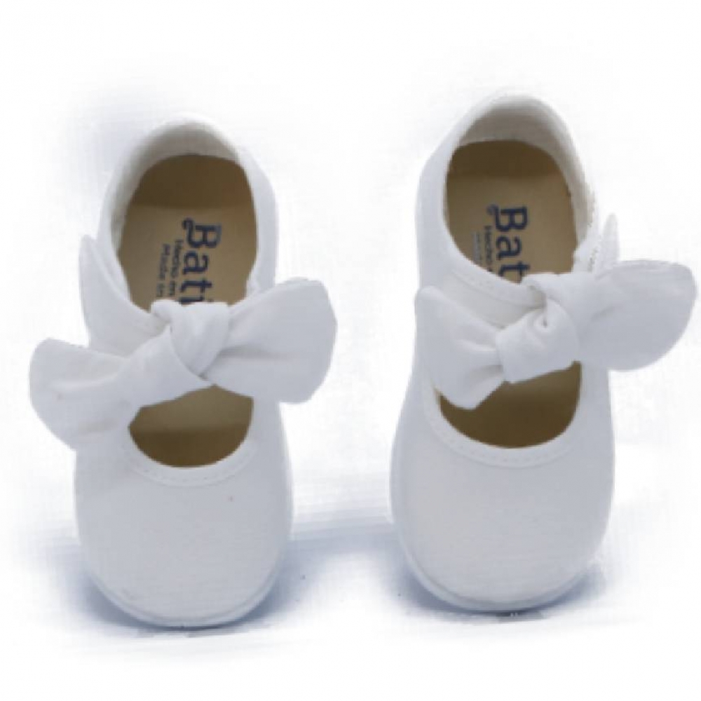Mercedita para niña de la marca BATILAS. Elaborada en material textil con cierre de tira con velcro regulable para facilitar el calce y ajuste del pie. Con lazo en su cierre adherente. Suela de goma al tono muy flexible y antideslizante. Fabricado en España.