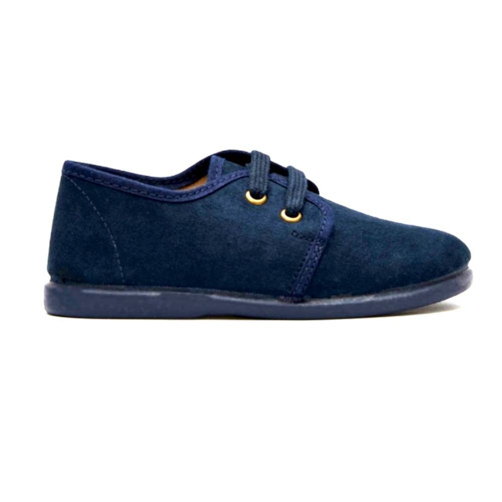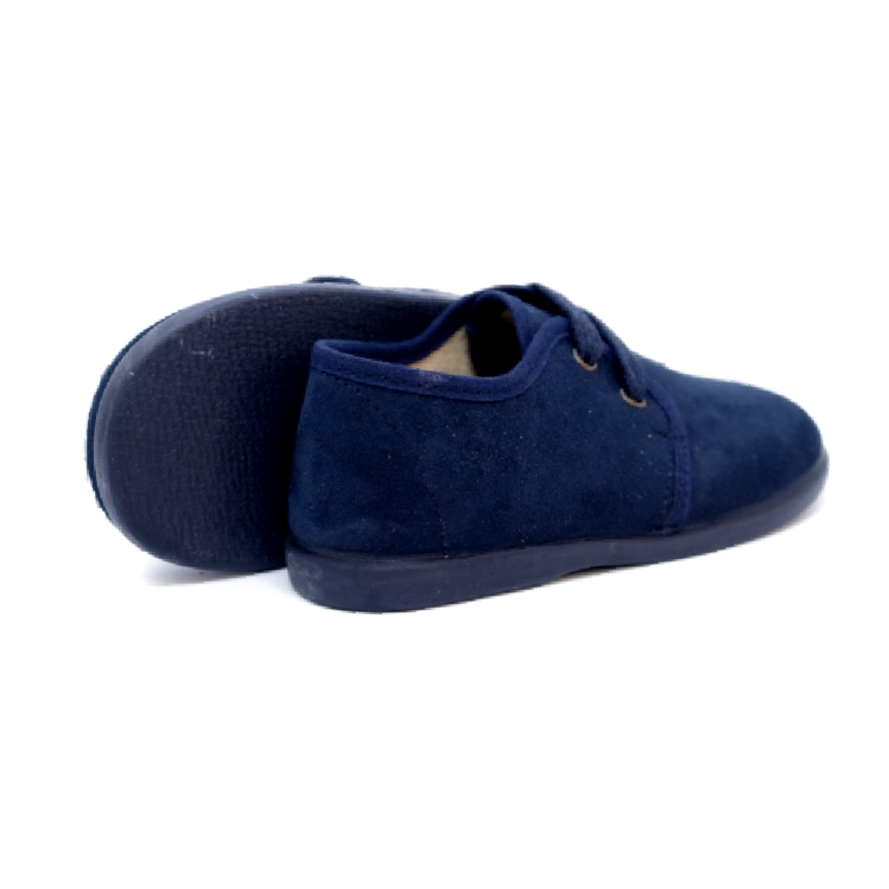 Blucher cordondes niños realizados en Serratex azul marino. Un calzado blandito y respetuoso que hará que siempre vayan cómodos y seguros gracias a su tejido y a su suela de goma antideslizante.