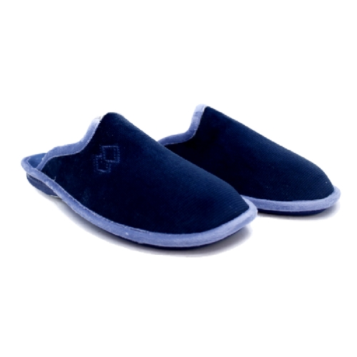 Zapatilla de casa descalza para hombre, de la marca Cosdam combinada en dos tonalidades de azul, oscuro y claro. Fabricada en material textil de primera calidad, con forro interior aterciopelado súper suave al tacto y calentita. Plantilla muy cómoda, con efecto Biorelax que ofrece máximo confort y bienestar para tus pies. Suela de goma antideslizante al tono, con la palabra 'Biorelax' grabada en el lateral externo.