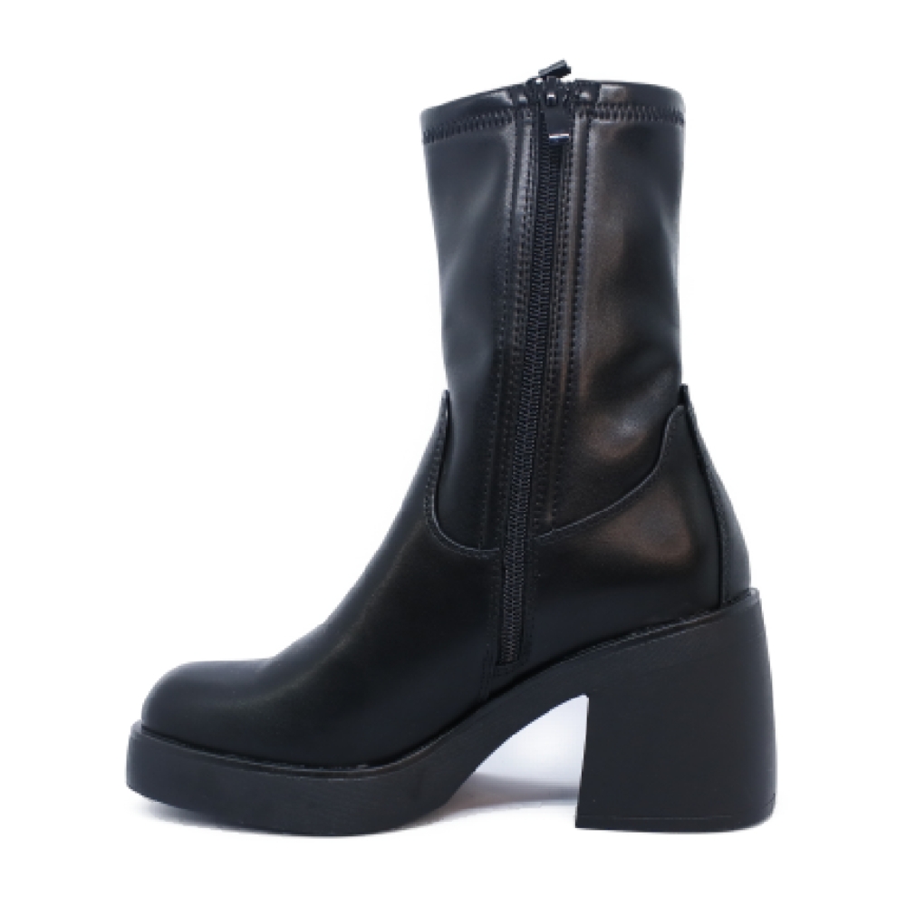 Botín de mujer realizado en suave material sintético y elástico en la caña. Suela truck de 7 cms y plataforma de 3 en su parte delantera. Un botín que se va a convertir en tu mejor aliado este invierno por su fantástica combinación con multitud de outfits. Suela de goma ligera antideslizante