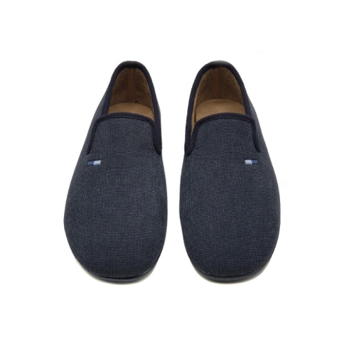 Chinela de hombre realizada en suave tejido bamara con plantilla mullida. Un básico renovado. Totalmente flexible gracias a su suela de caucho antideslizante.