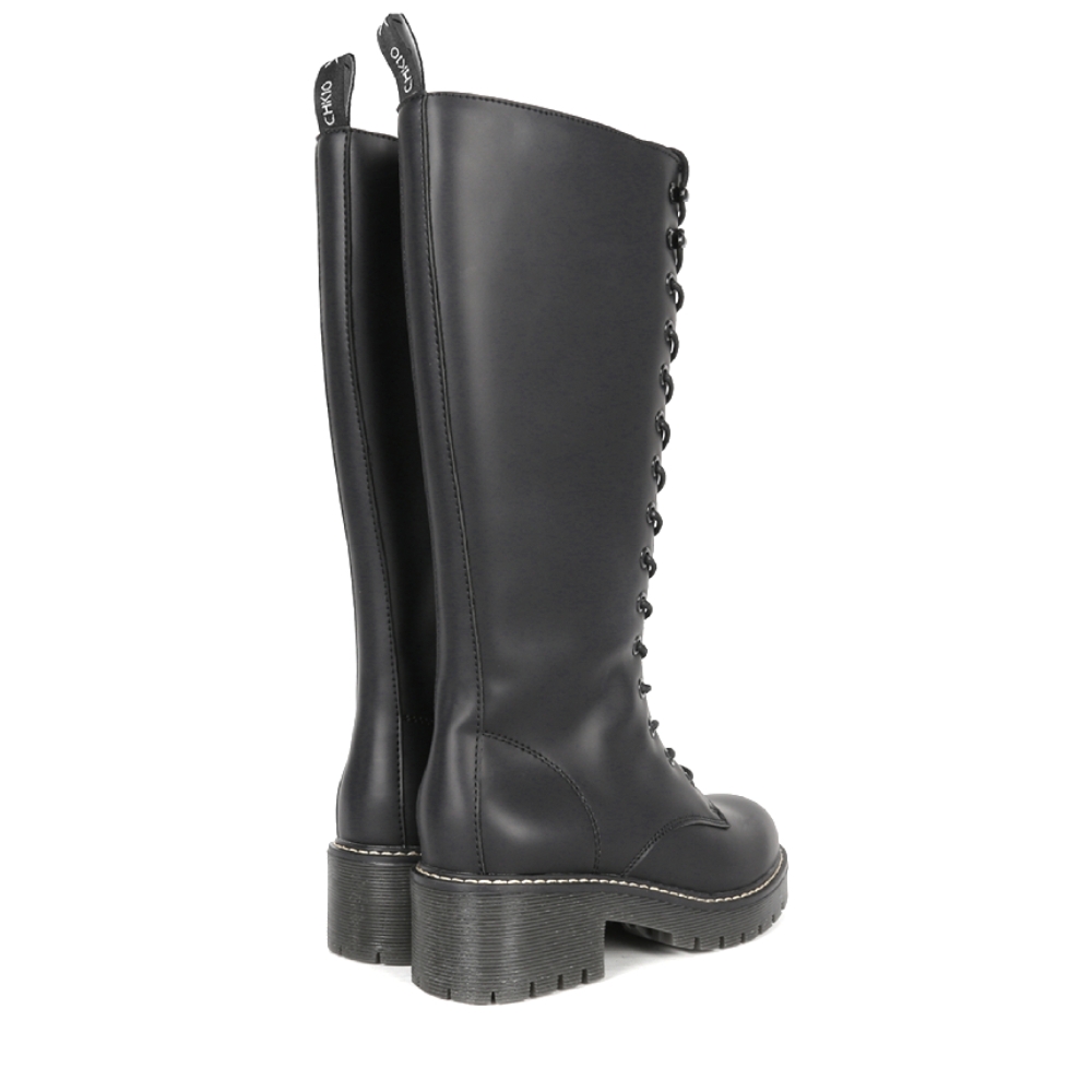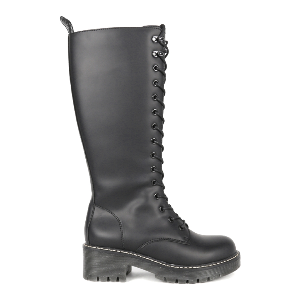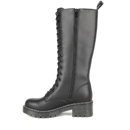 Bota militar caña alta con cordones y cremallera interna que facilita un ajuste perfecto para todo tipo de piernas. Suela de goma de 4 cms.