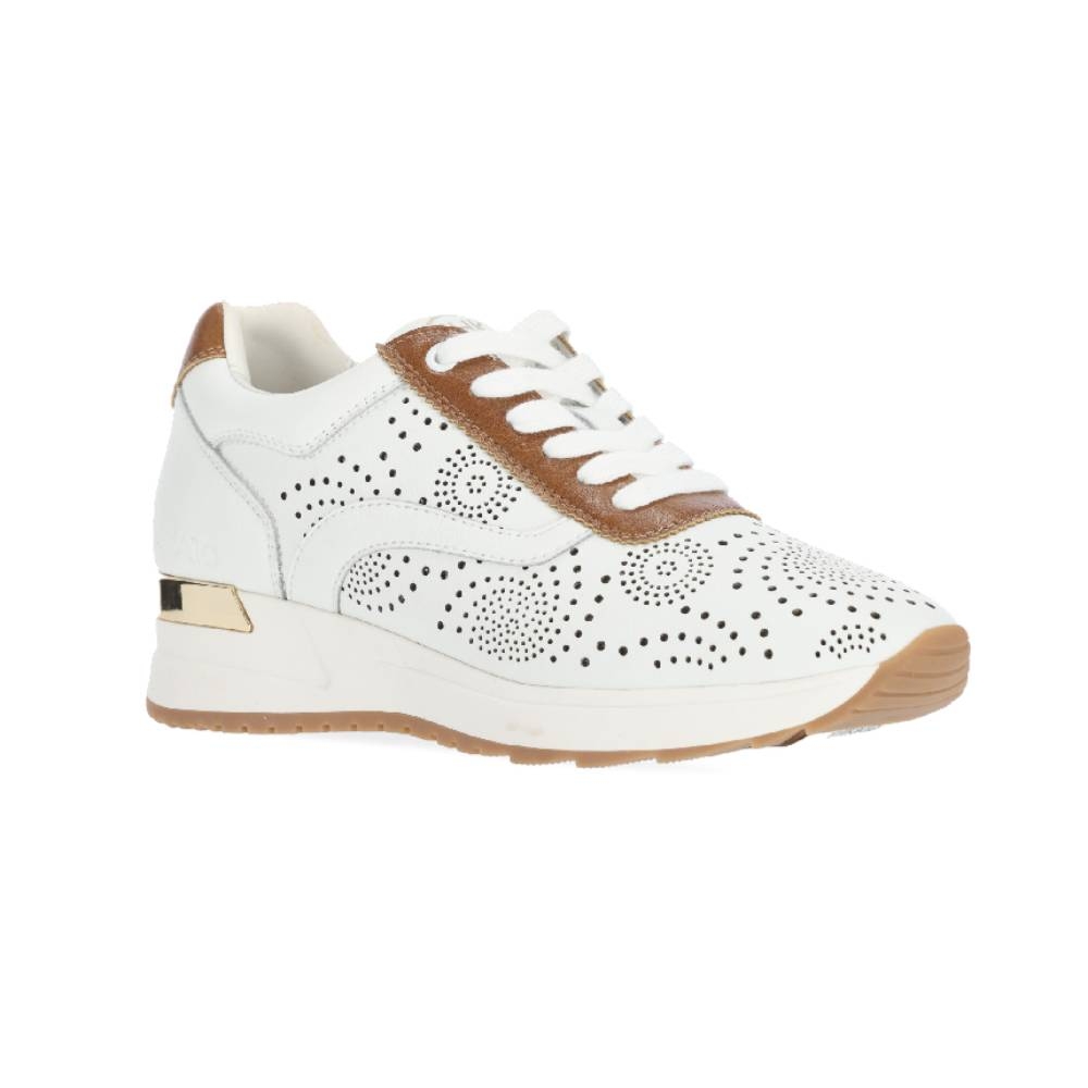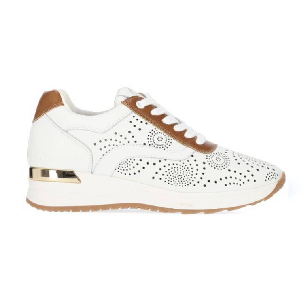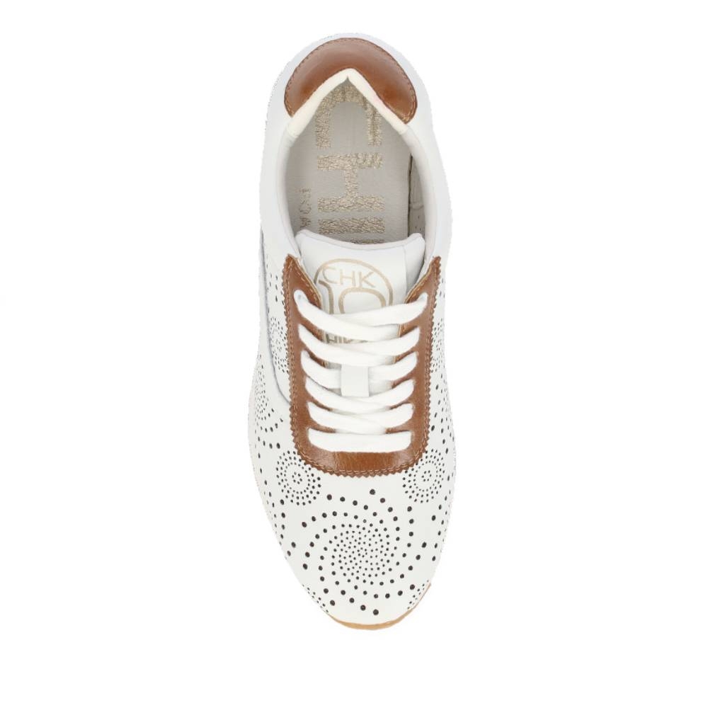 Zapatillas bajas de mujer de color Blanco de la marca Chika 10. El material usado en su fabricación es polipiel. El tacón de este par de zapatillas es plano.