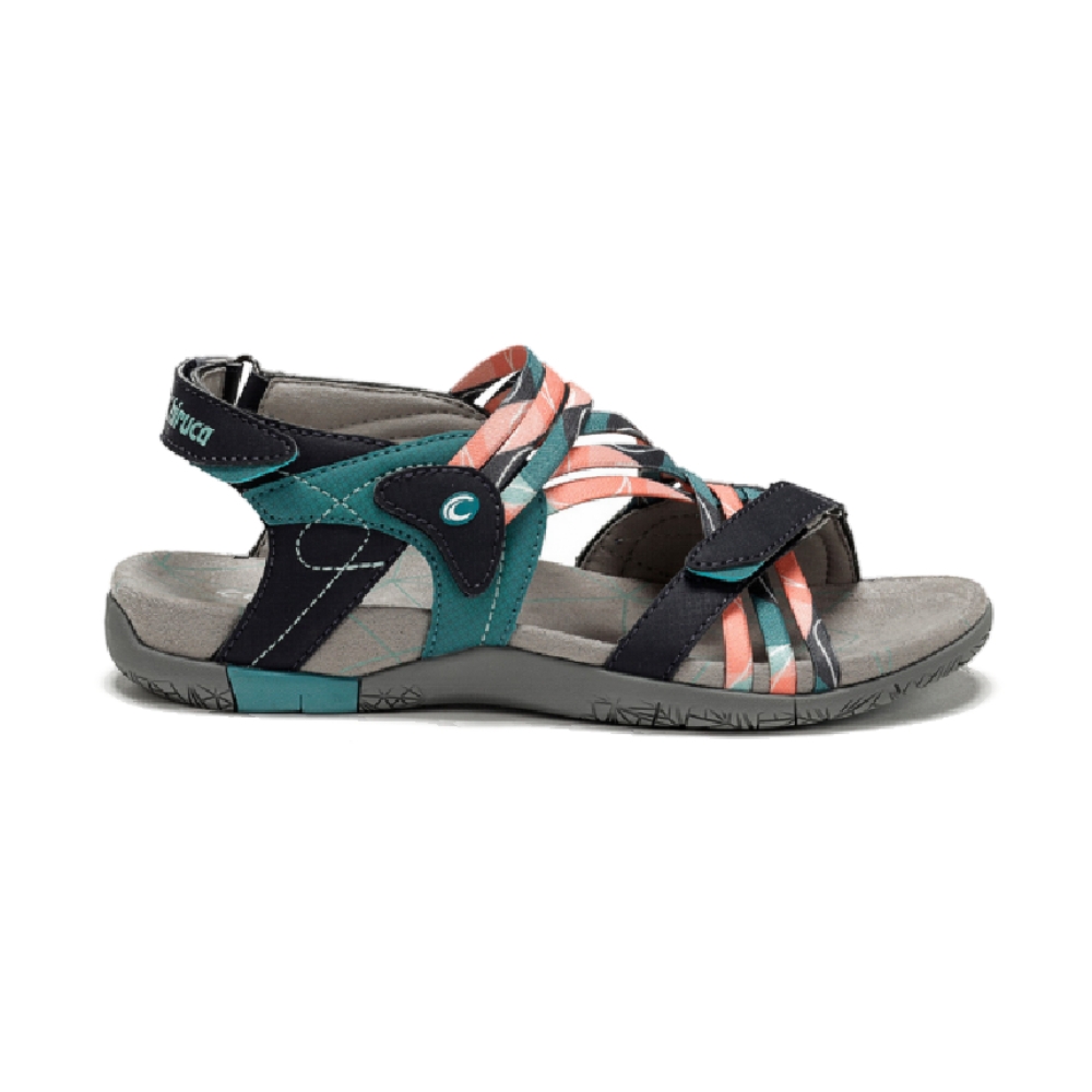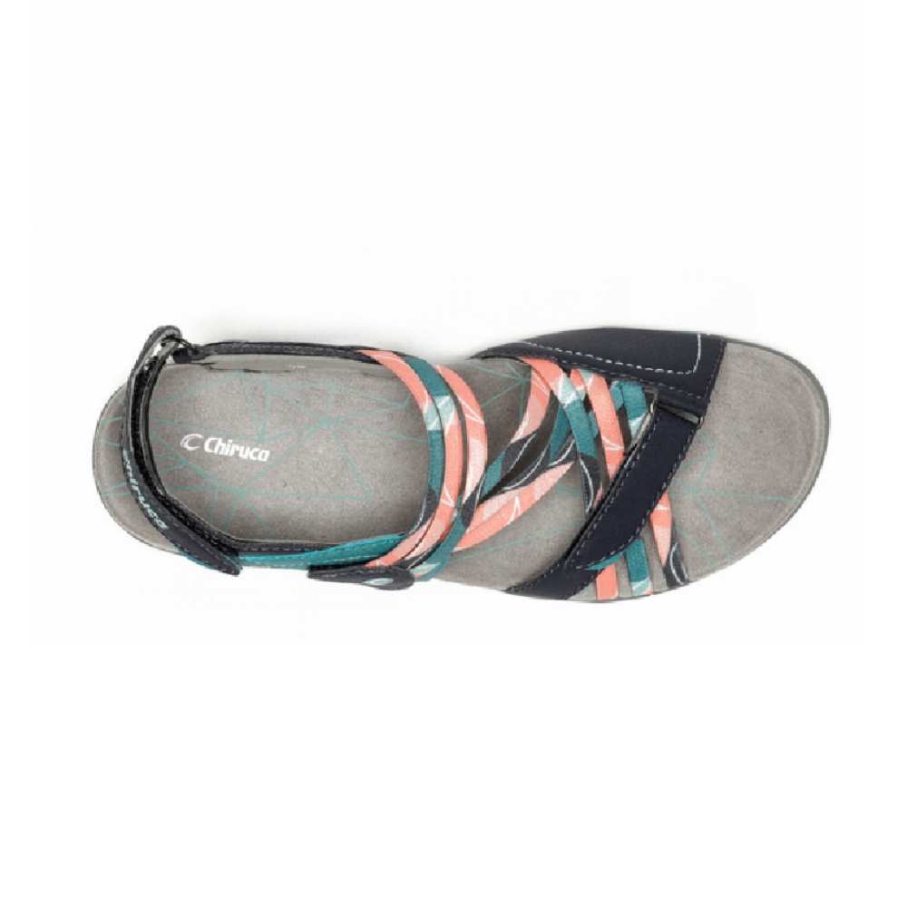 Sandalias montaña Chiruca Maldivas 08 azul coral mujer ideales para uso diario urbano y actividades senderistas de baja intensidad. Modelo aconsejado para actividades con clima caluroso. Modelo sintético y textil, con cierre velcro, entresuela de EVA y suela de caucho.