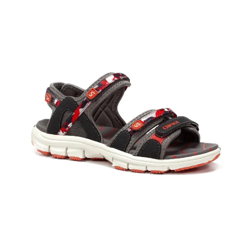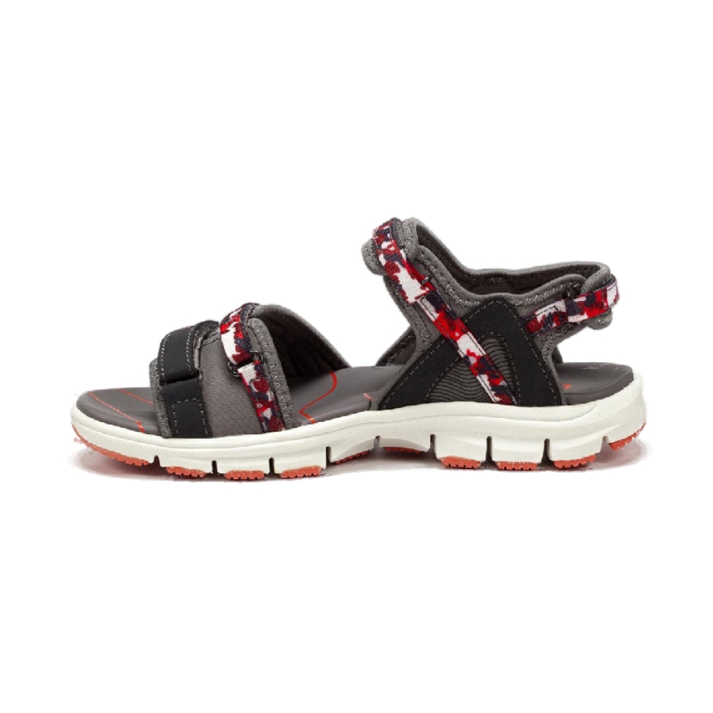 Sandalia para mujer modelo Yaiza 08 en color gris y rojo de la marca Chiruca.Corte sintético y textil / Sandalia con cierre de velcro.Entresuela EVA. Con forro de microfibra / Peso: 179 g. Suela de caucho.