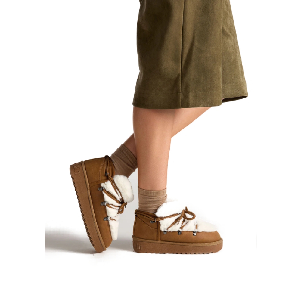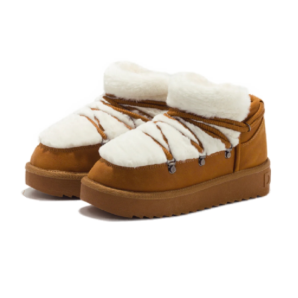 Diseño abotinado en tonos marrón y beige con forro interior sintético para una calidez superior.