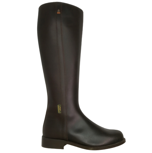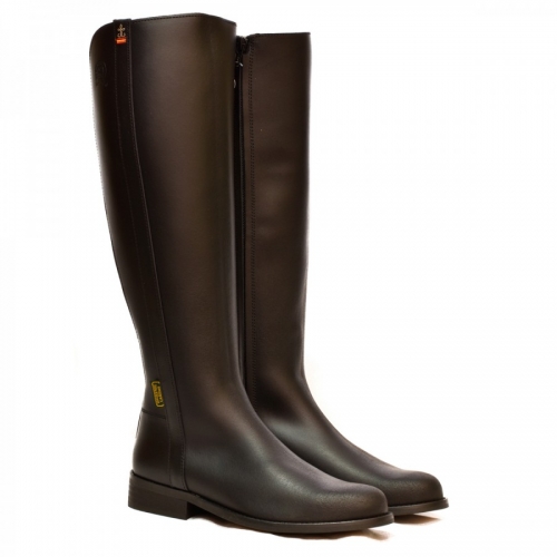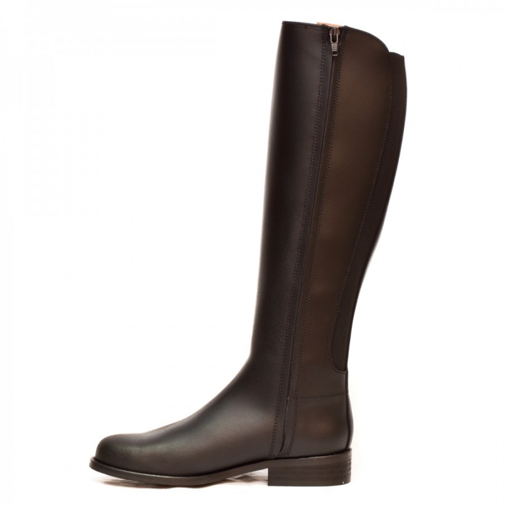 Bota campera mujer de inspiración hípica, piel engrasada, color castaña, con cremallera interior y elástico trasero. 100 % Made in Valverde.