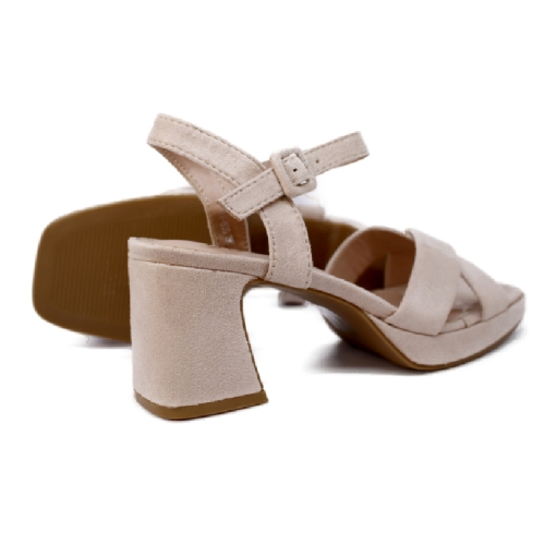 Sandalias de mujer en antelina nude con plataforma y tacón bloque - Línea Confort