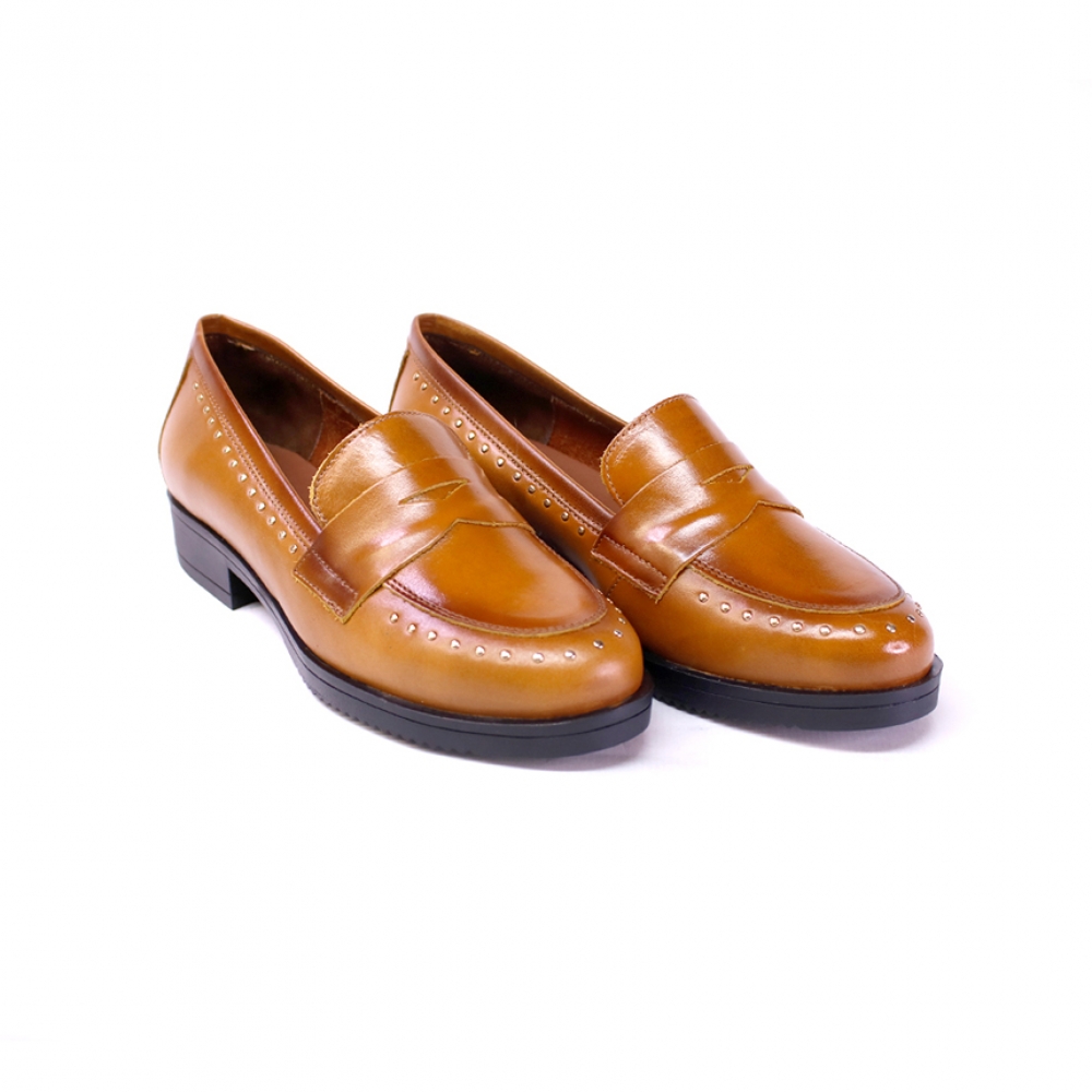 Mocasín piel colo camel, suela total flex de goma exclusiva de la marca Desiree. Plantilla extra cómoda que refuerza el confort en el empeine y la zona de los metartarsos.