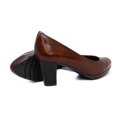 Zapato de salón marca Desireé para mujer elaborados en piel lisa de gran calidad en color marrón. elegantes con puntera redondeada y corte redondedado en el empeine.