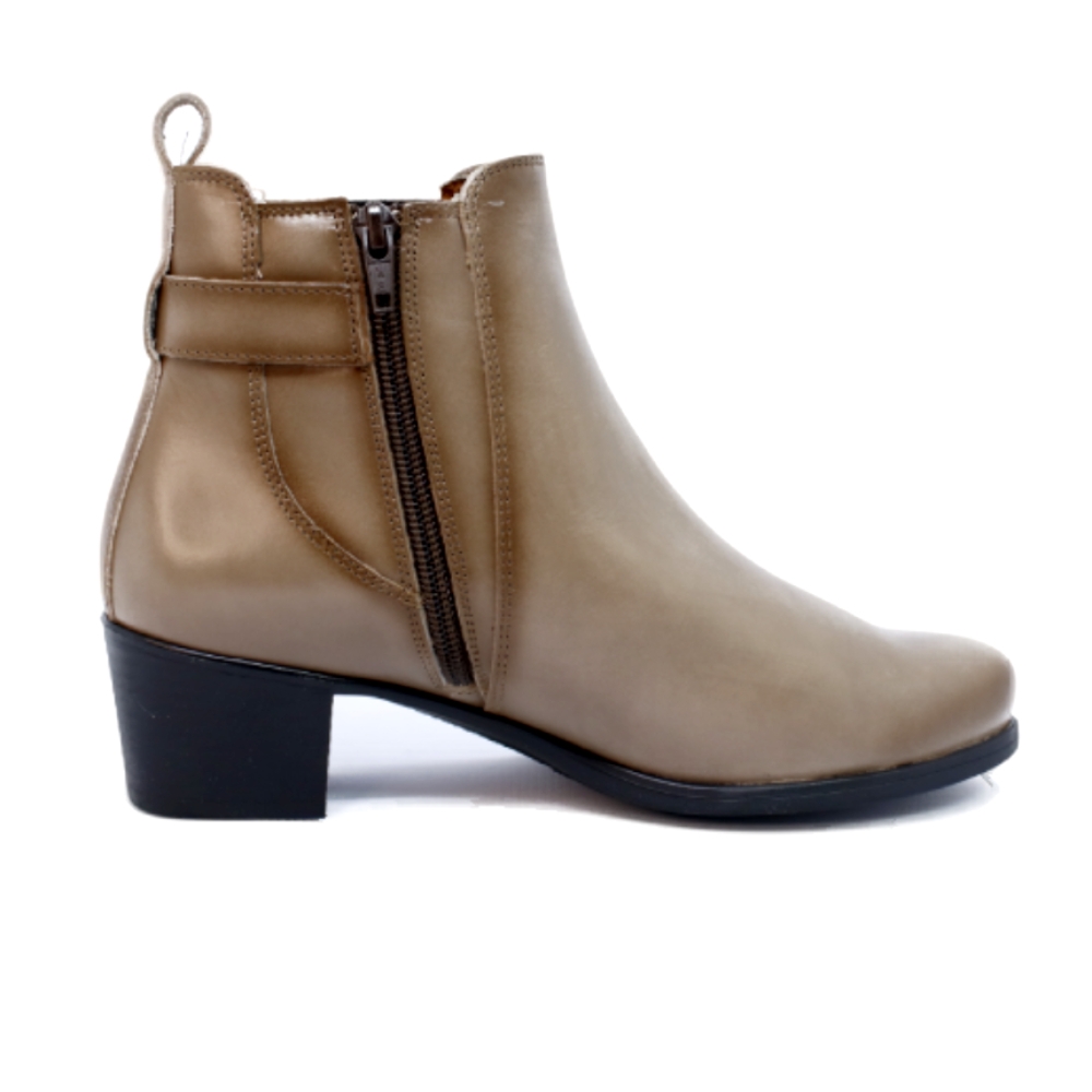 Botin de mujer de la marca española Desiree. Piel de la mejor calidad. Elástico lateral y cremallera para un buen ajuste. Piso de goma antideslizante, tacón muy comodo y estable. Caña de 10cm. Un fondo de armario.