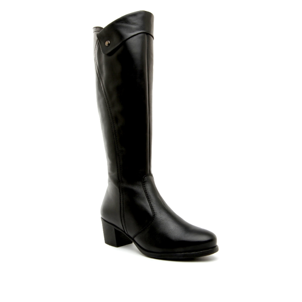 Bota de mujer en piel de primera calidad con tacón tacón de 4 cms y suela de goma de 1 cm de grosor que proporciona un gran aislamiento térmico y agarre en los días de lluvia. La caña va forrada en tejido aislante.