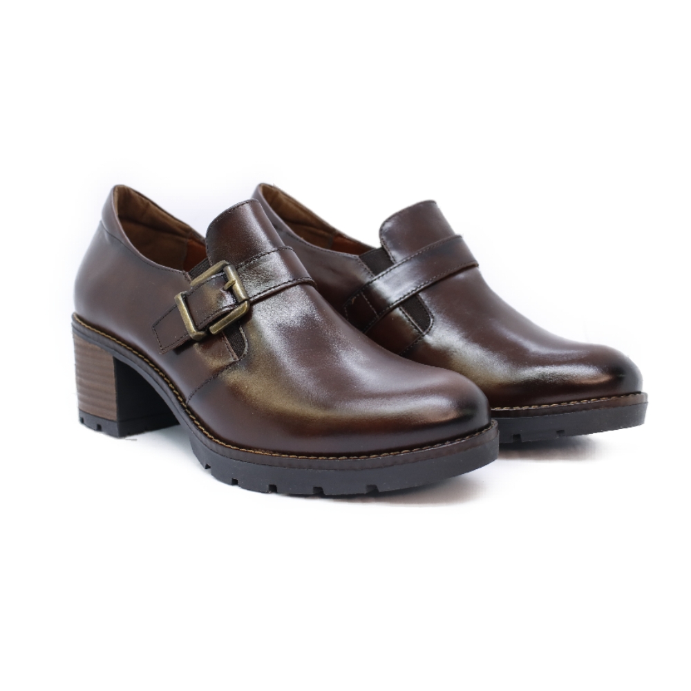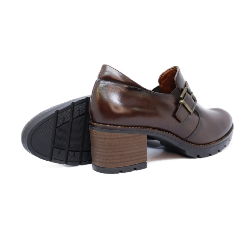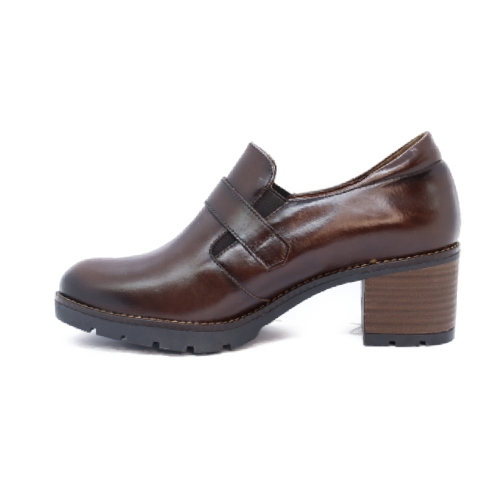 Mocasines Tacón Desireé ROSY23 Zapatos para mujer en color marrón. Mocasín, tacón 6 cm, zapato de estilo casual, suela de goma termoplástica, exterior piel e interior forro textil planta de piel, elásticos y detalle de hebilla. Suela de goma antideslizante. Forro interior de piel. Plantilla textil acolchada no extraíble.