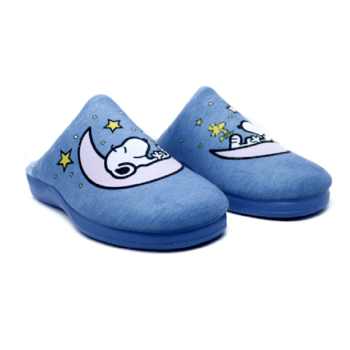 Zapatilla de casa con Snoopy en la luna.  Modelo cómodo y abrigado para los días más fríos.  Ideales para regalar y sorprender a personas queridas. Hecho en España. Modelo 1171. Color gris. relajantes, termoestables, flexibles, lavables y anti bacterias. Suela de goma antideslizante.