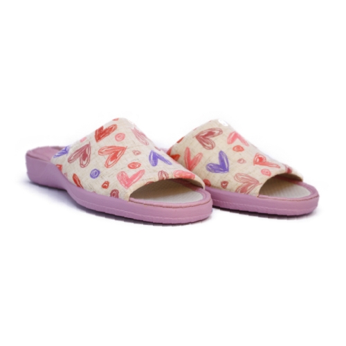 Diseño colorido de corazones: Presenta un original estampado de corazones, ideal para quienes buscan un calzado de casa con personalidad y estilo tierno.