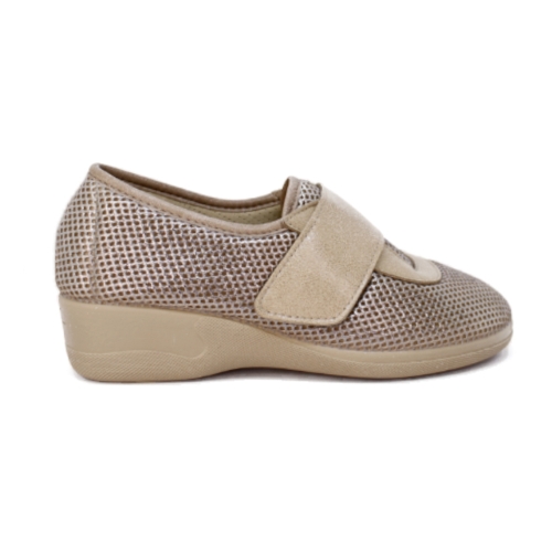 Descubre el confort absoluto con estas zapatillas de casa DeValverde en un elegante tono arena con efecto brillante. Diseñadas sin costuras interiores, son perfectas para pies delicados o anchos, ofreciendo una sensación de suavidad y bienestar desde el primer paso.