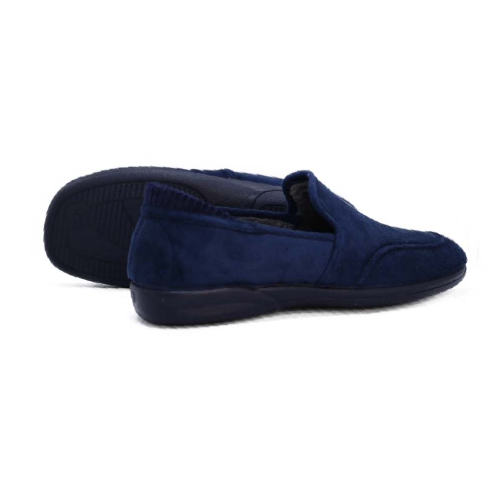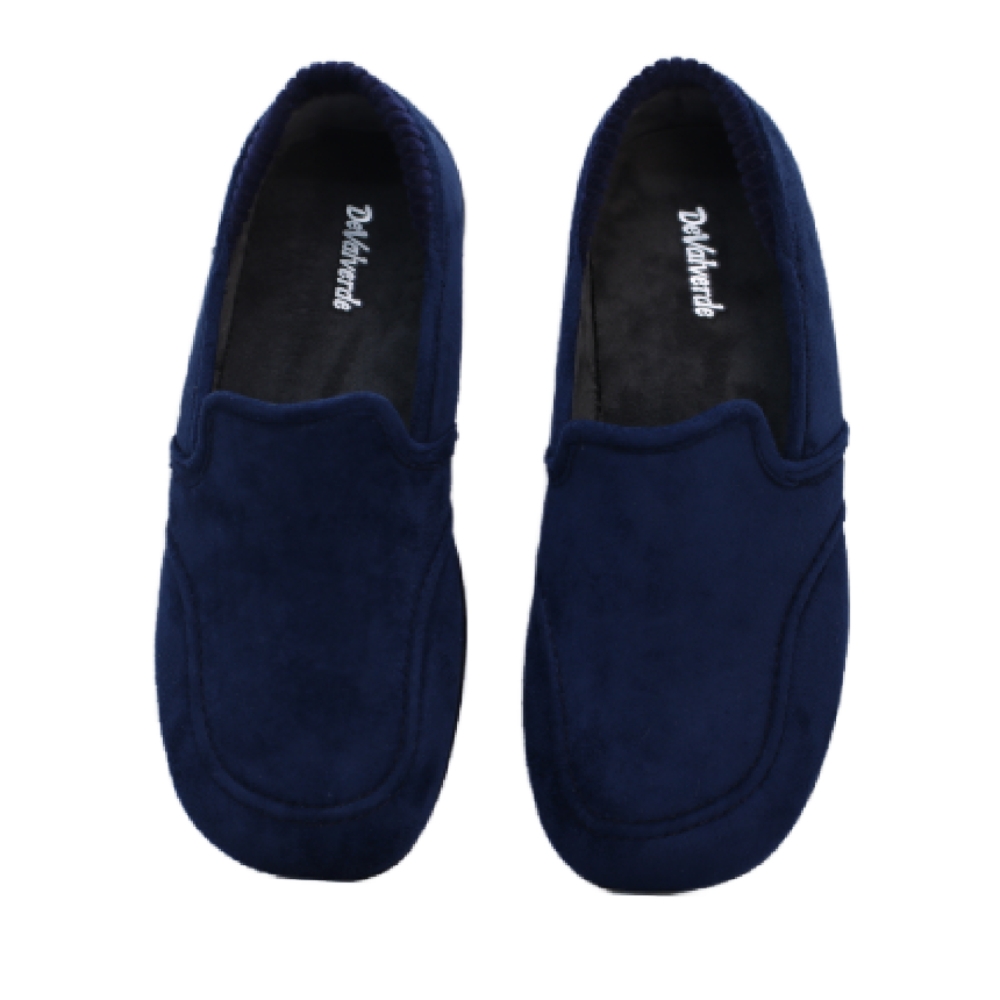Diseño Clásico y Funcional: Presentan un acabado en tejido suave de color azul marino con detalles elásticos en los laterales para facilitar el calce y asegurar un ajuste perfecto al pie.