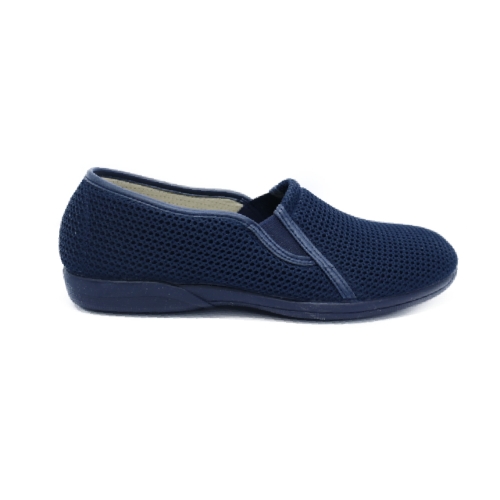 Zapatillas de casa para hombre cerradas, azul marino , elásticos en los lados del empeine ideal para pies anchos.  Piso antideslizante. Fabricada con tejidos en microfibras y algodón que permiten una constante ventilación. Suela con relleno de corcho natural. Hecho en España.