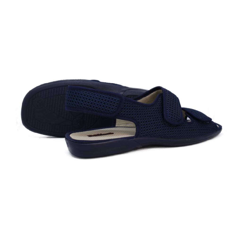 Sistema de Ajuste: Cuenta con un cierre de triple cierre adherente (dos en la parte delantera y uno en el talón), lo que la hace ideal para pies con ancho especial, inflamaciones o que requieren una sujeción personalizada.