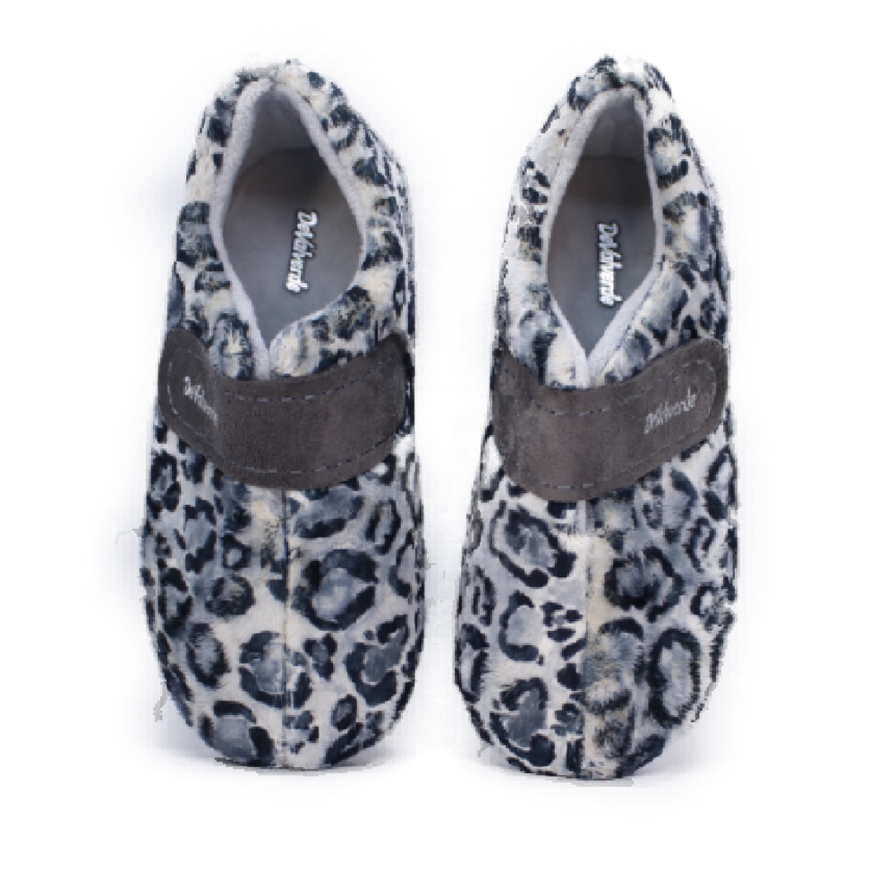 Estas cómodas zapatillas de casa para mujer  destacan por su diseño elegante y funcional. Están confeccionadas con un suave tejido gris con estampación animal print.