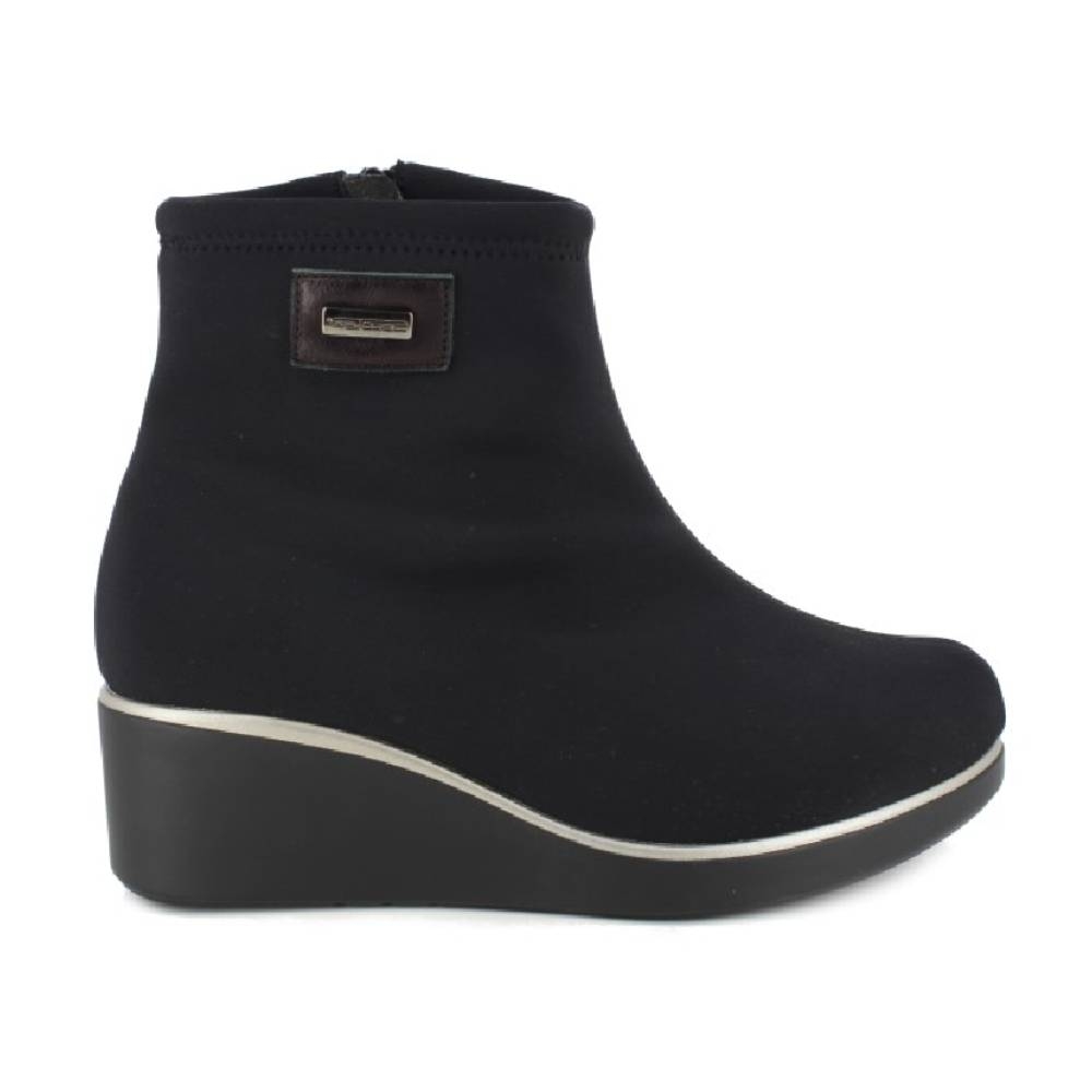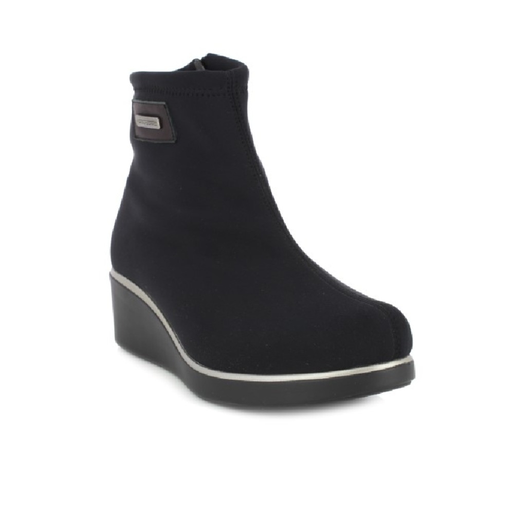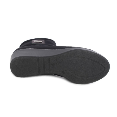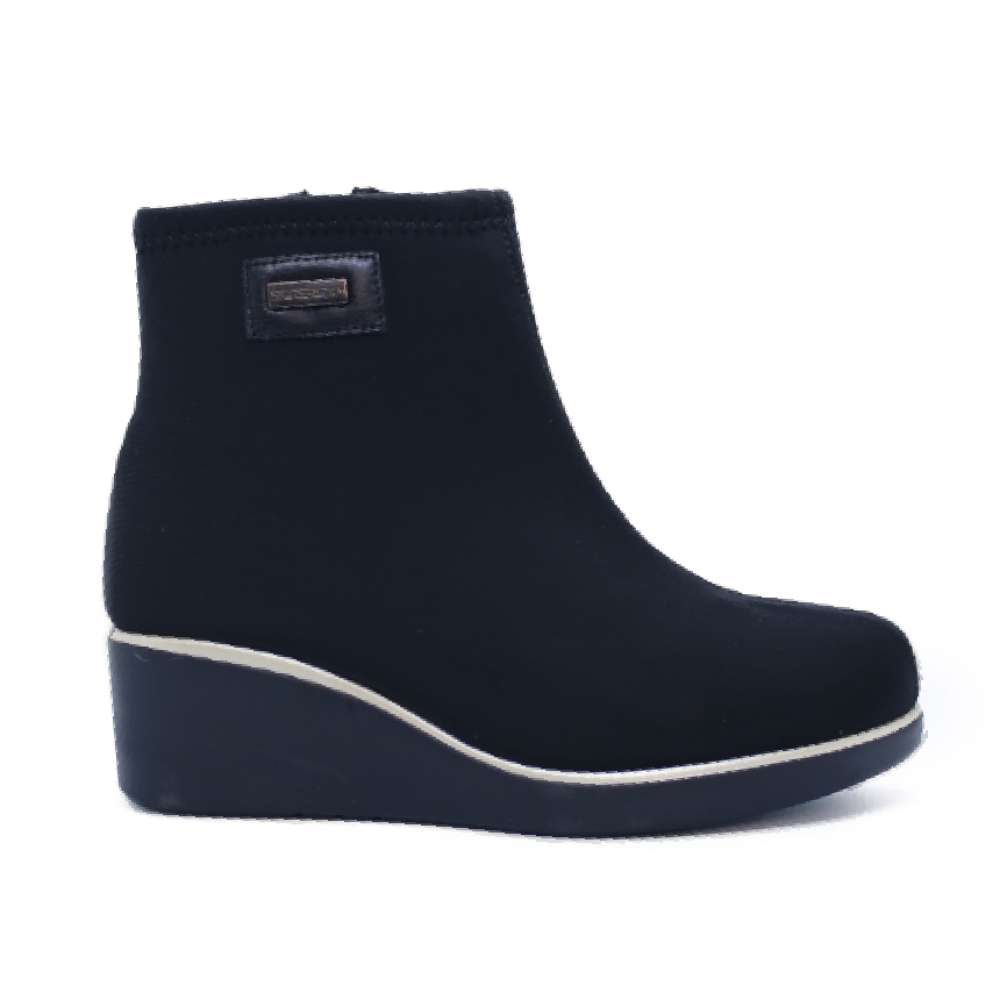Botín de licra para mujer con tecnología SECOTEX, suela tipo cuña y plantilla extraíble. Cierre con cremallera en el interior. SECOTEX es una membrana hidrofuga y transpirable exclusiva de Doctor Cutillas que dificulta la entrada de agua en los pies, y al mismo tiempo facilita la evaporación de la humedad, manteniéndolos secos y evitando malos olores. La integración de la tecnología SECOTEX exclusiva de Doctor Cutillas en el calzado además de impedir la entrada del agua, garantiza una efectiva transpiración y evacuación del sudor, manteniendo en equilibrio la temperatura interior de nuestros pies.