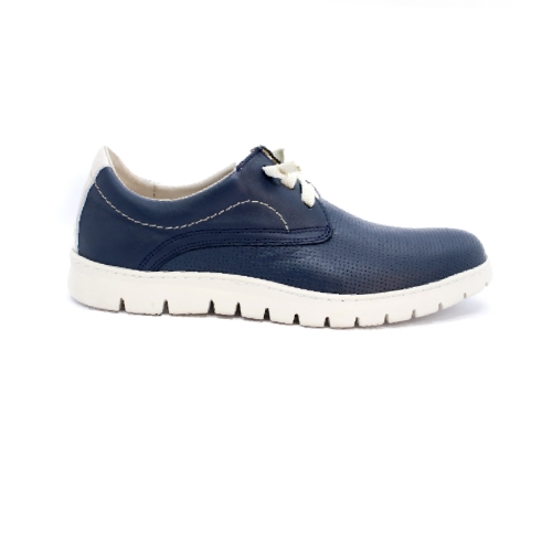 Blucher para hombre en piel napa Azul. Zapato de cordones fabricado en piel napa con cierre elástico. Este zapato destaca por su suela ultra ligera y muy flexible que hace que caminar resulte muy cómodo. Un zapato perfecto para todos los días. ERASE es una marca de calzado española. Entre sus valores principales están el apoyo a la economía local y de proximidad, el uso de pieles de calidad superior y la defensa del medio ambiente. Quien usa un calzado ERASE sabe que calza calidad, confort y ética con unos diseños únicos.