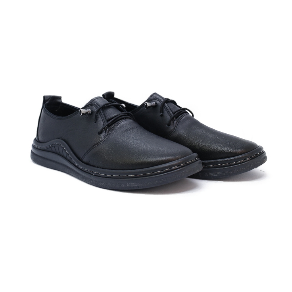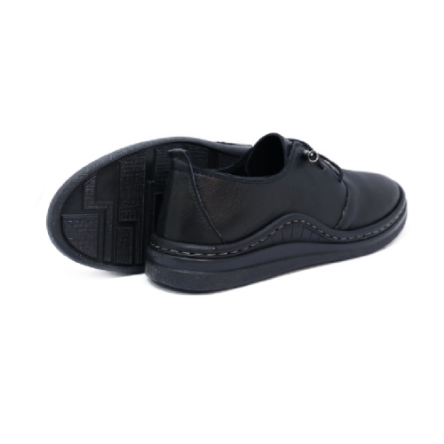Zapato de señora en piel color negro, con cordones elásticos que facilitan mucho el calce. Piso en goma flexible y antideslizante. Plantilla extraible termoconfortada.