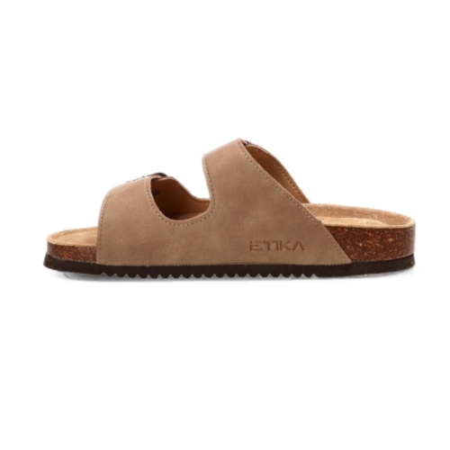 Disfruta del máximo confort este verano con la sandalia plana de dedo para mujer de la marca ETIKA (Modelo 10015). Este modelo tipo "bio" destaca por su diseño funcional en un versátil color Taupe, ideal para combinar con cualquier look casual.