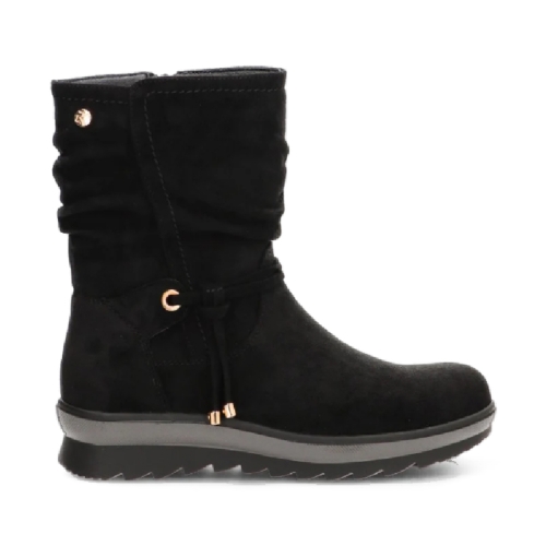 Este botín, con su distintivo y elegante color negro, se adapta a una gran variedad de ocasiones, desde una jornada en la oficina hasta una salida de fin de semana. Su diseño diario se caracteriza por su silueta limpia y minimalista. El material exterior de antelina le confiere un tacto suave y un acabado sofisticado, ideal para cualquier outfit.