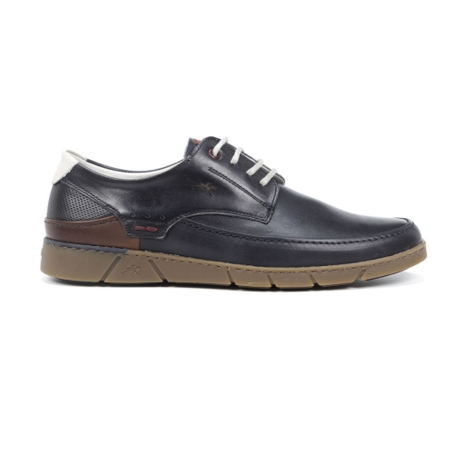 Zapato elaborado en suave piel tintada en color azul. Parte trasera con apliques de piel grabada, piel color marrón y una pequeña pieza de piel en color taupe en el contrafuerte. Cierre de cordones. Forro y plantilla elaborados en piel. Plantilla acolchada y extraíble. Suela de goma cosida. Hecho en España.
