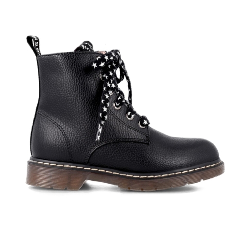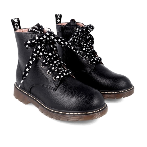 Botines negros con cordones decorativos fantasía fabricados en materiales de primera calidad efecto metalizado