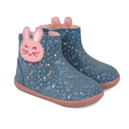Botines BAREFOOT RESISTENTES AL AGUA para niñas fabricados en serraje decorado con pequeños topitos metalizados