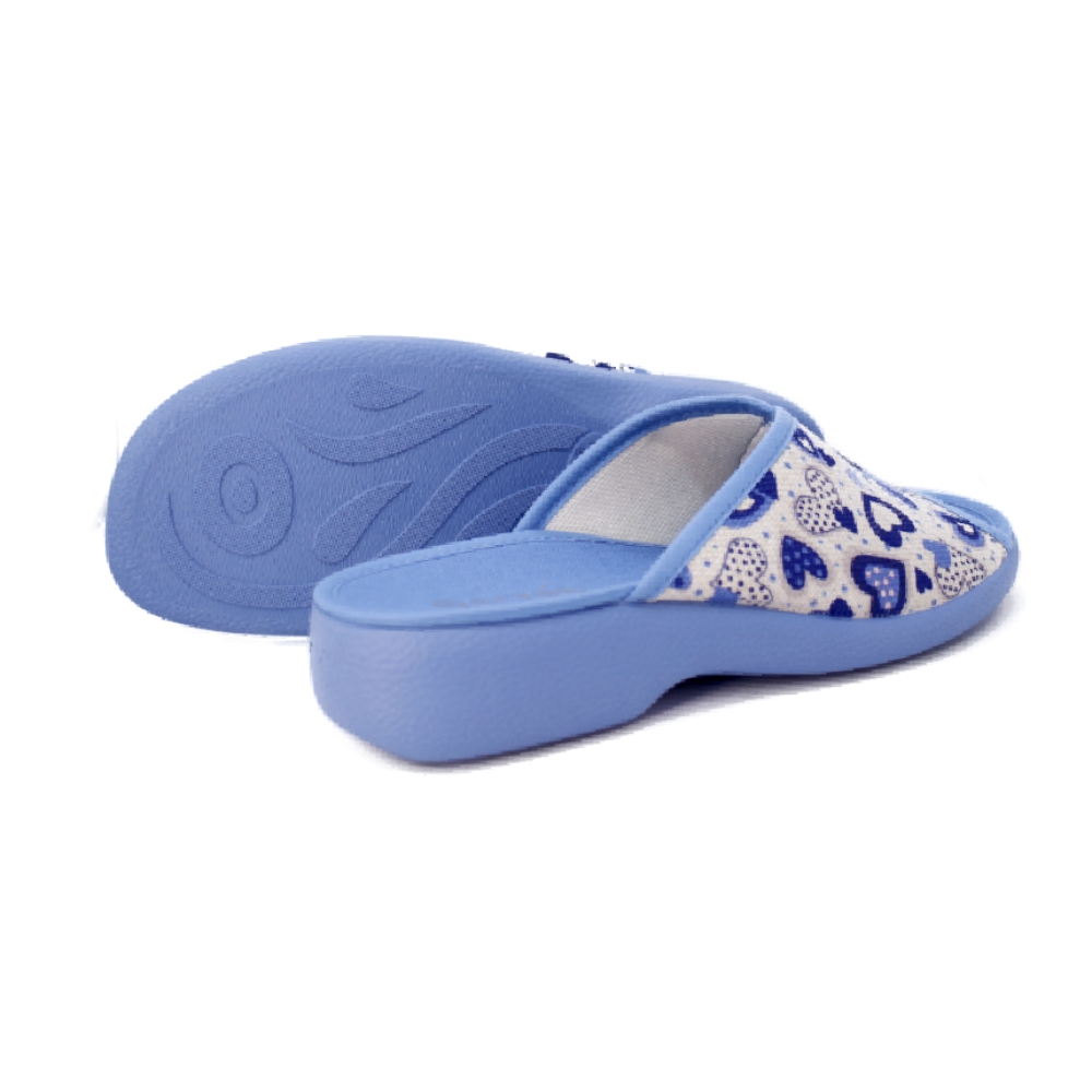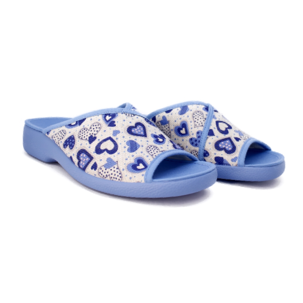 El tejido suave con estampado de corazones en tonos azules aporta un aire alegre y femenino, ideal para quienes valoran el estilo sin renunciar a la comodidad. Fabricadas con mimo y materiales de calidad, estas zapatillas están pensadas para acompañarte en tus momentos de relax con la confianza de una marca española de referencia.