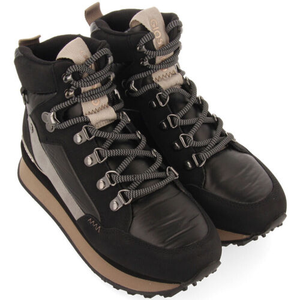 Ficha esta tendencia. Sneakers negras tipo botín montañero con detalles metalizados. Plantilla anatómica extraíble. Forro y planta transpirables de poliéster reciclado. Descubre lo último en sneakers de mujer en la nueva colección de Gioseppo Woman.