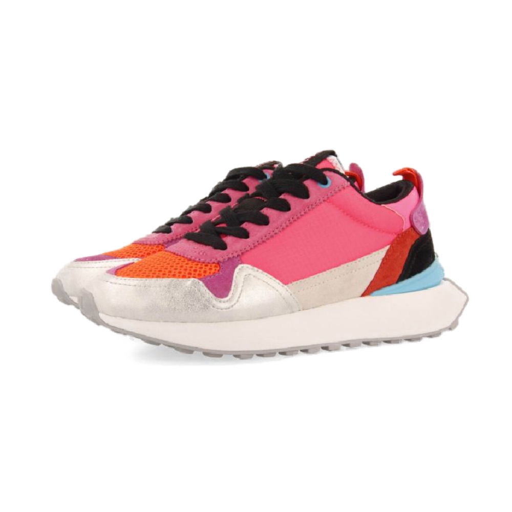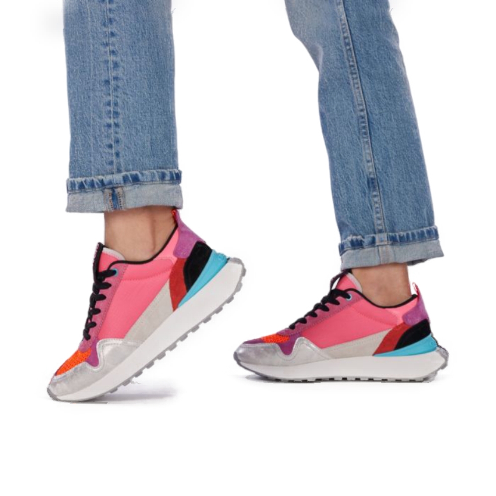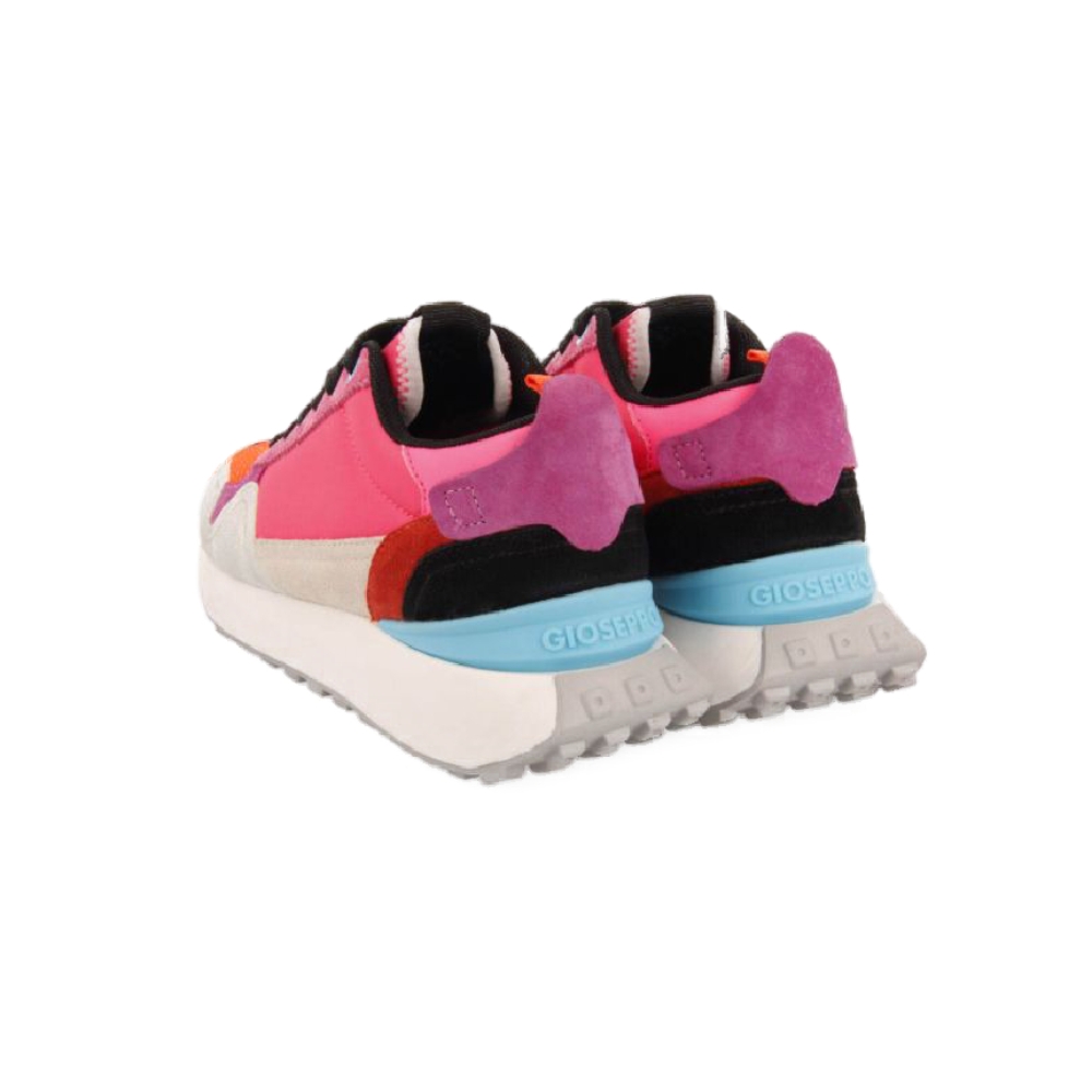 ¡Súmate al rosa con Gioseppo! El 10% de los beneficios de este modelo se destina a FECMA (Federación Española Contra el Cáncer de Mama) para programas de investigación a través de la beca SEOM. Sneakers multicolor de estilo retro que combinan piezas y materiales en tonos vibrantes. Plantilla Gio Memory Effect, sistema de efecto memoria que suaviza la pisada aportando una comodidad extra. Forro y plantilla transpirables de poliéster reciclado. Piso de EVA muy ligero. Este modelo cuenta con el sello PODOLOGIC, que certifica que ha sido diseñado junto a podólogos expertos en la salud del pie.