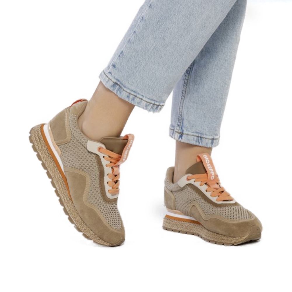 DEPORTIVO RAFIA.Deportivo GIOSEPPO 71063 color Beige para Mujer con Suela plana 3,5CM y diseño exterior en Piel con interior Forro y planta textil, Cordones . Actual y moderno.
