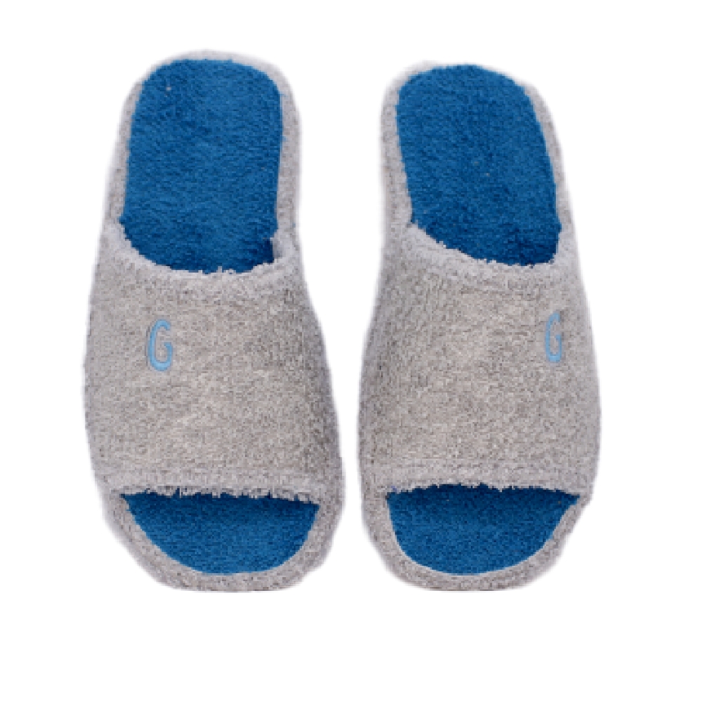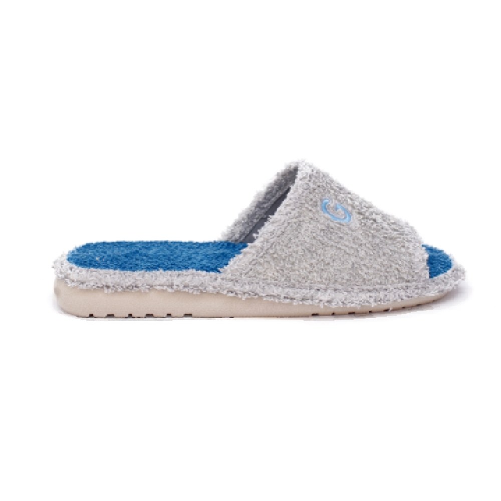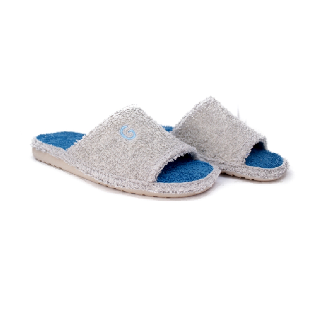 Zapatillas de toalla de algodón con la puntera abierta por delante con piso silencioso.