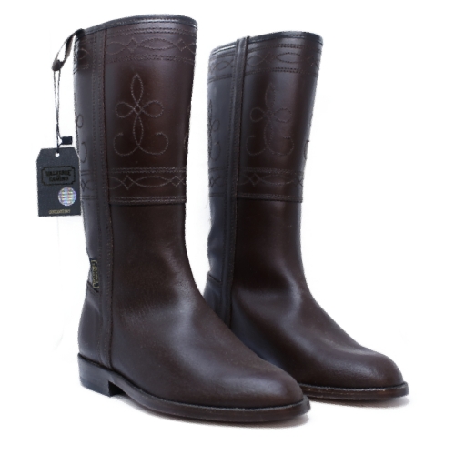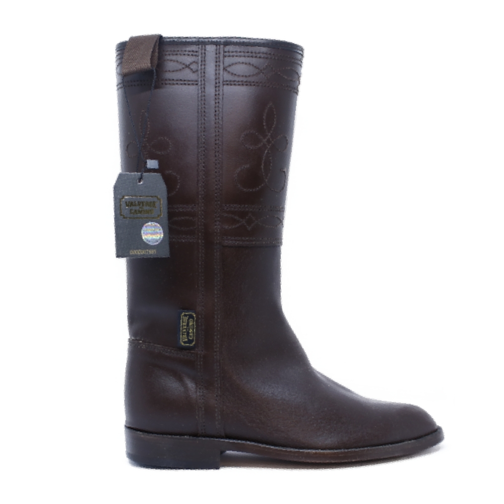 Bota campera clásica color castaño de Valverde del Camino. Preciosas botas camperas clásicas fabricadas en piel de vaqueta castaña. Estas botas de piel son artesanales, de diseño campero típico , ideales para montar y usar en romerías, ferias e incluso para usar en la calle.
