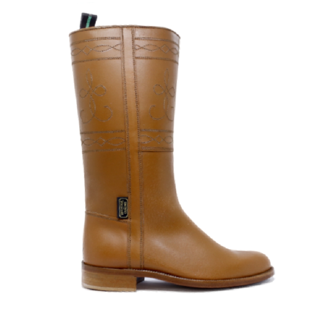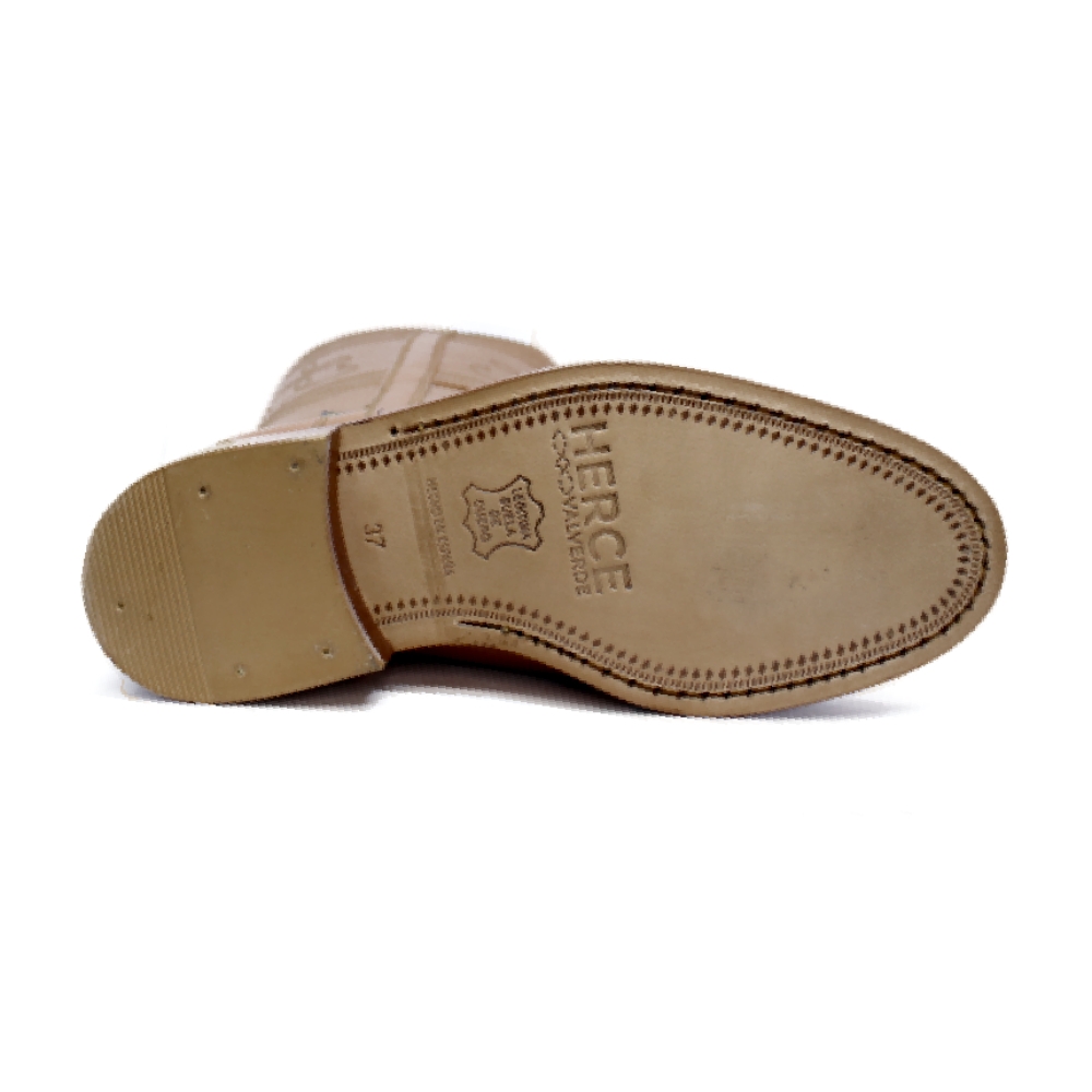 Bota campera clásica color natural de Valverde del Camino. Preciosas botas camperas clásicas fabricadas en piel de vaqueta natural. Estas botas de piel son artesanales, de diseño campero típico , ideales para montar y usar en romerías, ferias e incluso para usar en la calle.