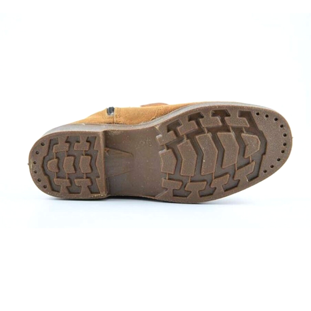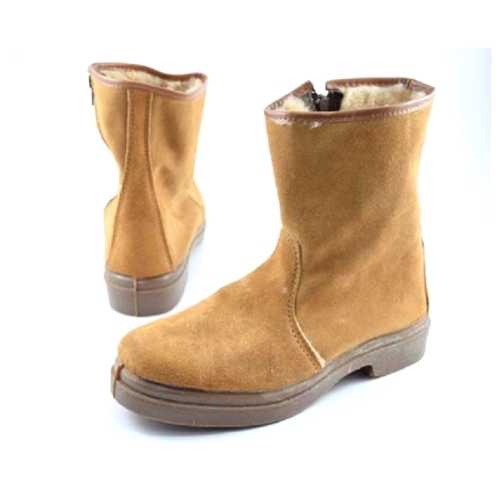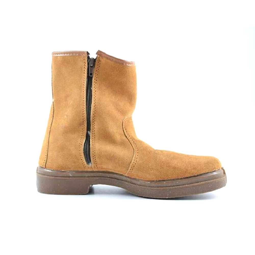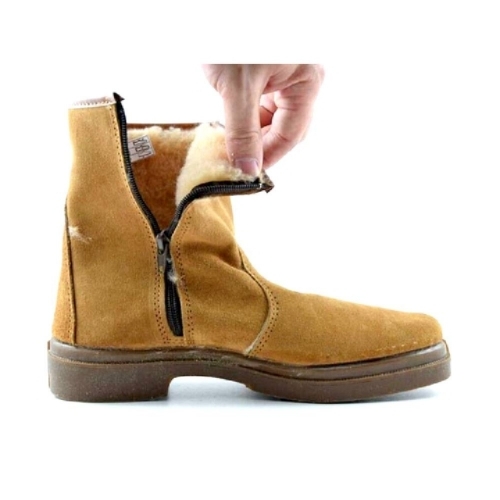 Se trata de una bota de trabajo alta con cremallera lateral. La piel  es serraje, la suela de auténtico caucho 100% natural y su interior borreguillo. Su fabricación es nacional.