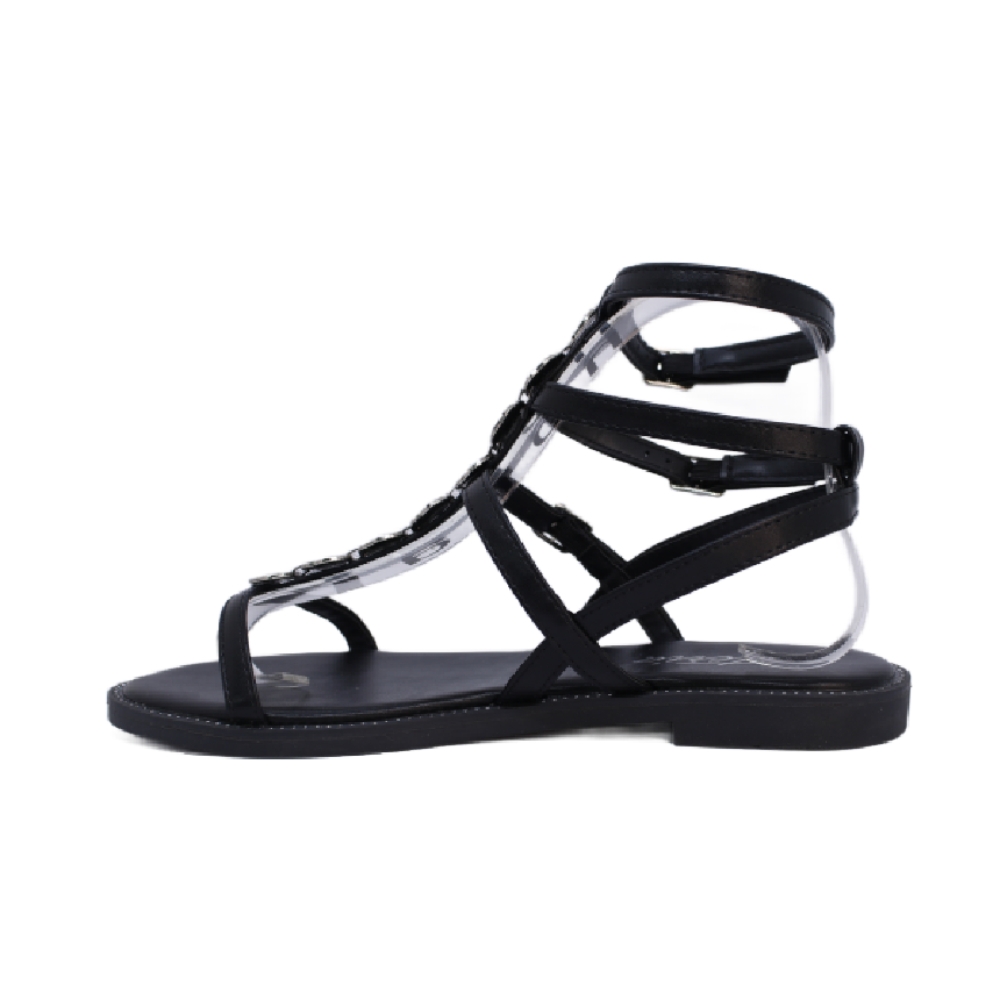 Diseño Vanguardista: Estructura tipo "gladiadora" con tiras cruzadas en color negro atemporal.