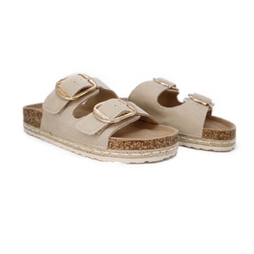 ISTERIA Sandalia Bio serraje beige dos hebillas