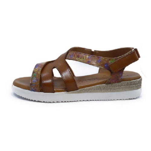 JORDANA - Sandalia piel cruzada cuña blanco dibuja