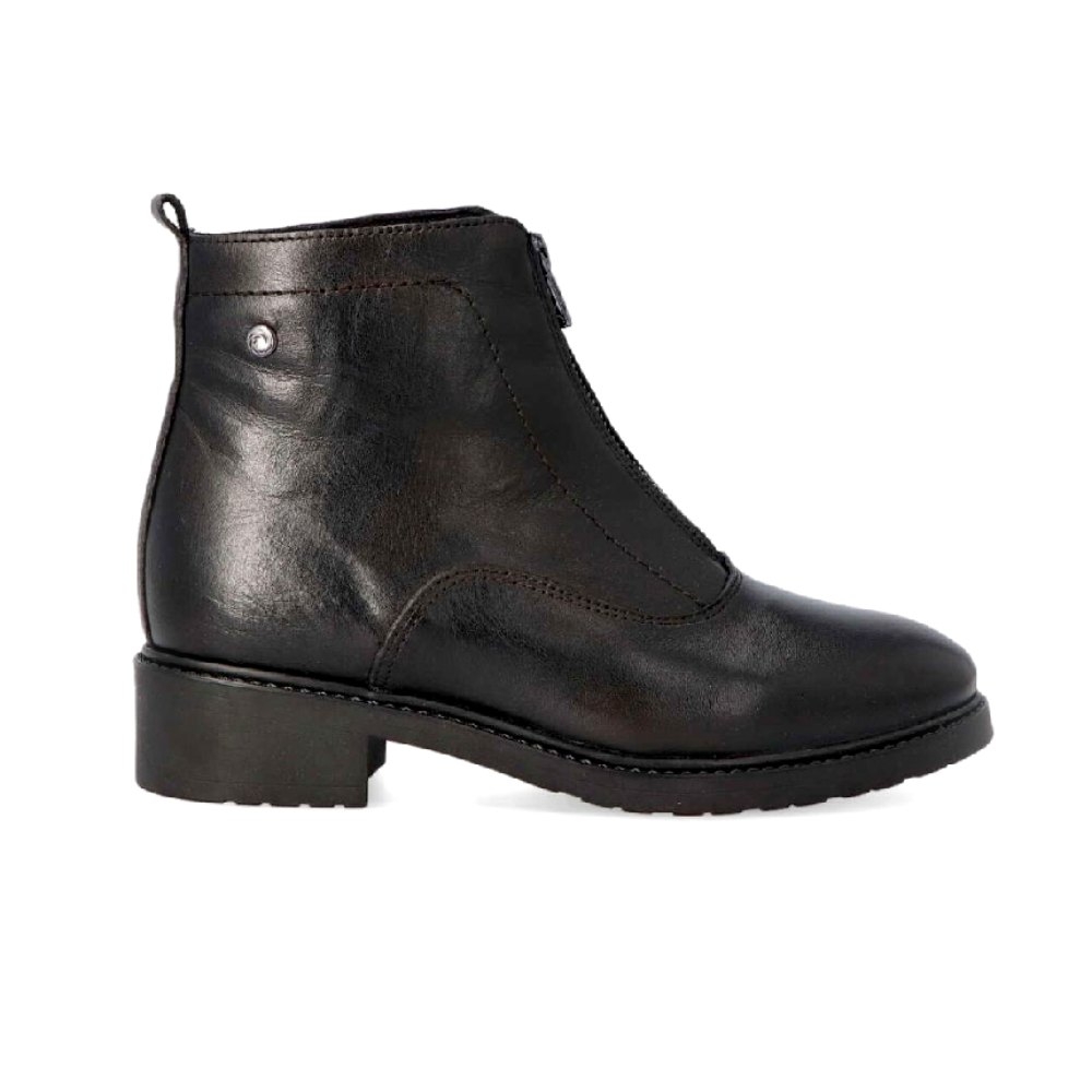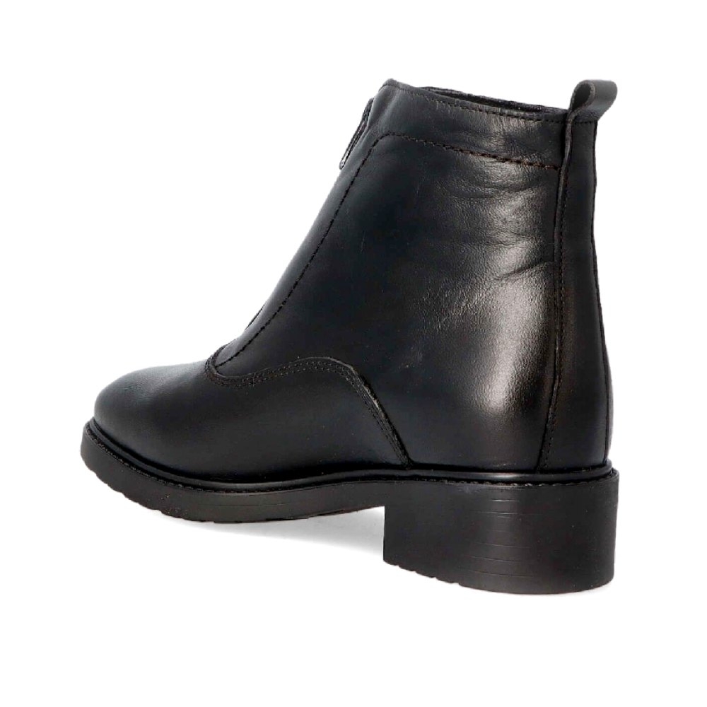 Botin realizado en piel negra de primera calidad. Cierre con cremallera delantera. Un moderno concepto para un botín clásico